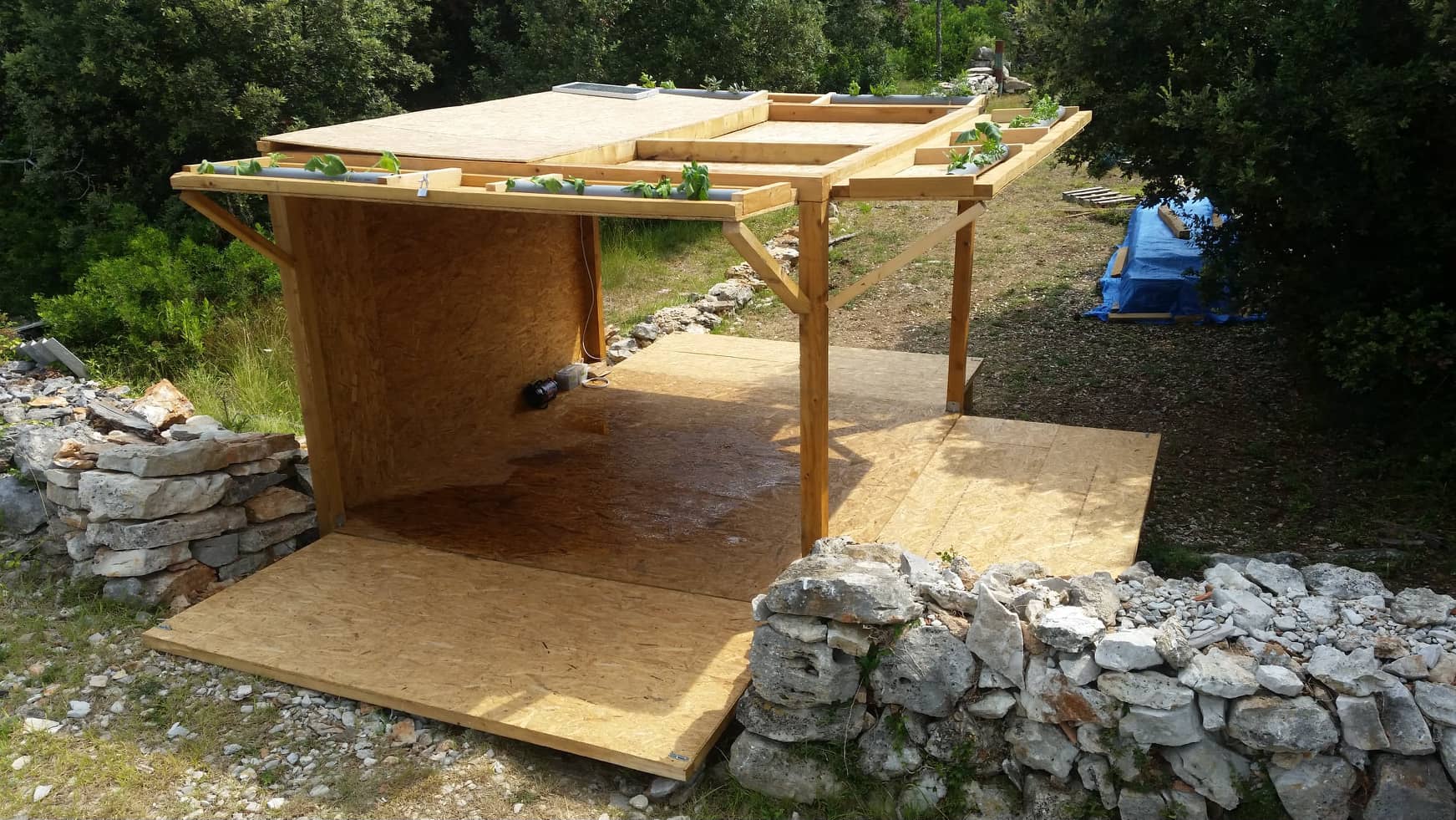 - permaculture garden is watered with recycled shower water and fertilized with compost from toilets