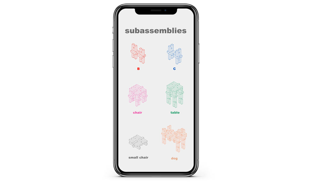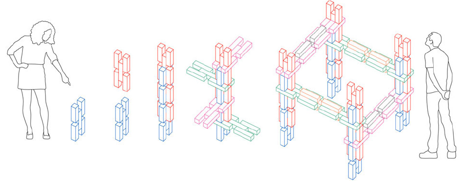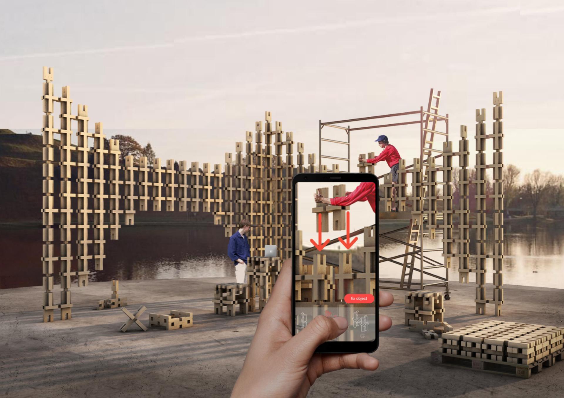 Collective Assembly aims to invite people to participate in a collaborative building process and open up the possibility of integrating AR technology into construction. The idea to trigger interest in collaboration between strangers formed the basis for the design. By using only a repetition of a single element, the assembly achieves a level of simplicity similar to wooden building blocks for children.