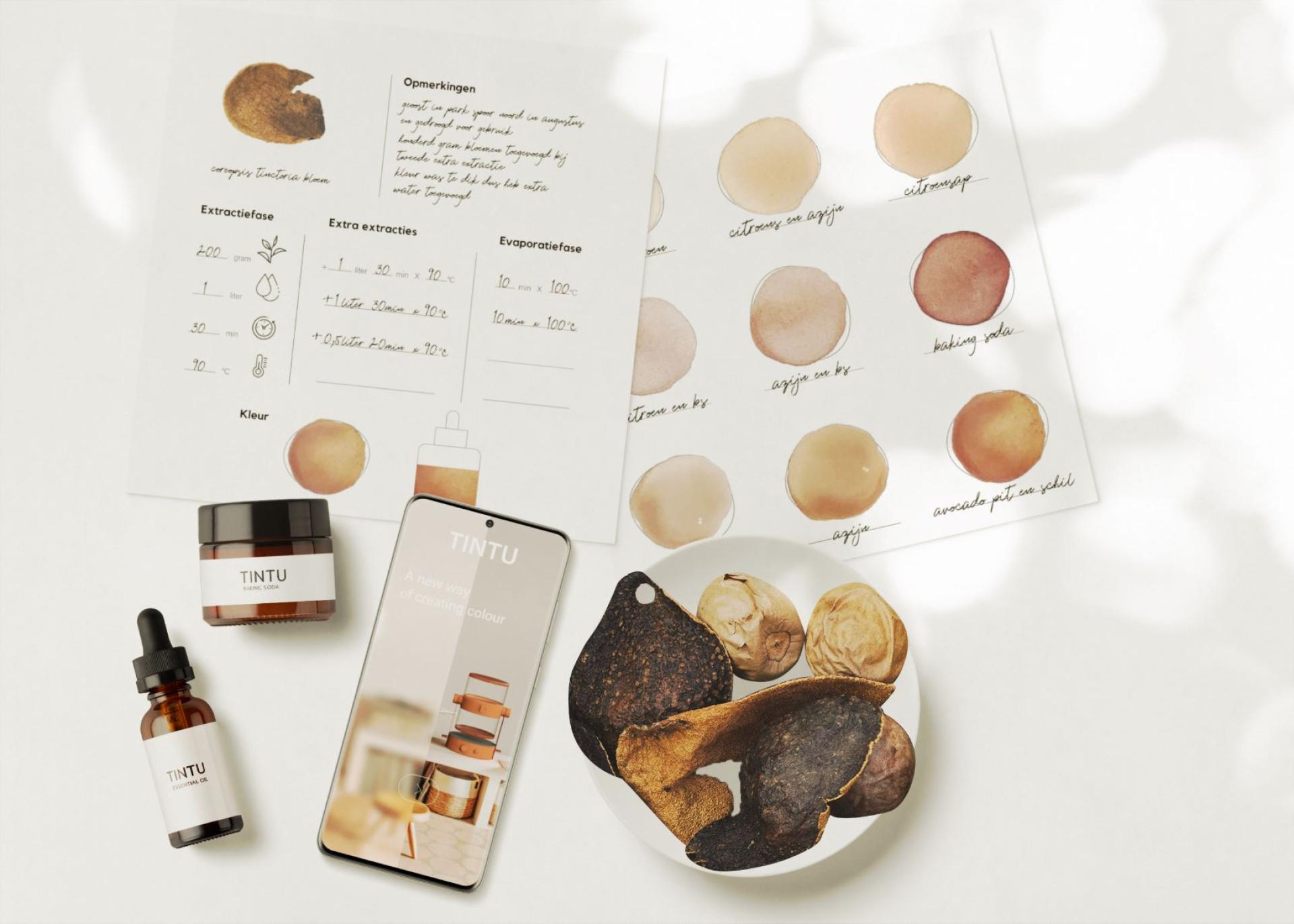 With the product TINTU, you can create your own natural colours at home on the basis of plants and food waste. These raw materials are completely natural, packaging-free, renewable and can be collected by the users themselves. So there is no packaging involved, and no organised transport, which lowers the impact of this activity enormously compared to chemical colouring products such as paints and textile dyes. In addition, dye plants are often reusable as they contain a large amount of strong dye.