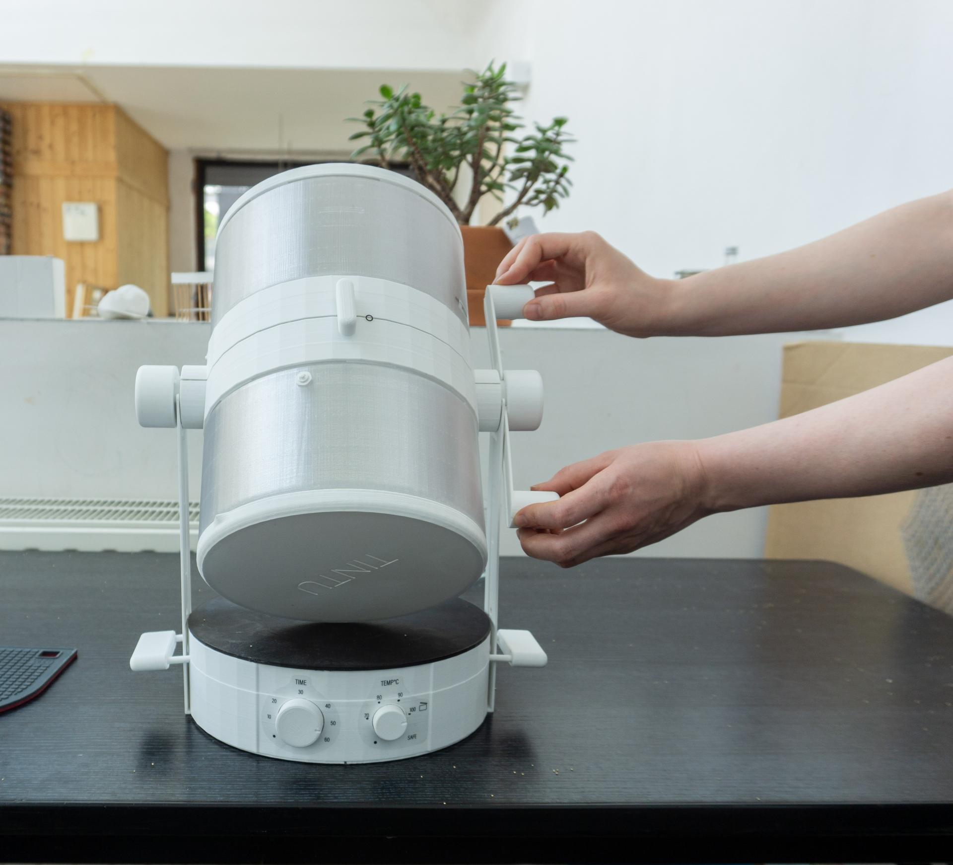 Previously, colours were often made in pots and pans in the kitchen. Since some of the plants used to make colour are not edible, this is a dangerous mix of applications. TINTU has its own heating element and cooking pot. Therefore, pots and pans which can also be used for cooking by accident do not have to be used. The heating element makes TINTU a context-flexible product. It can be safely placed in the kitchen as well as in a creative room or on a workbench.
