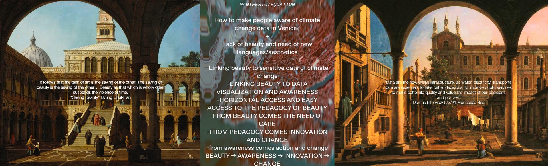 This project materialize climate change data layer of our cities through beauty. Raising awareness through an innovative tool for everybody means to create a common awareness for the cities of the future. The project is born from the city of beauty, Venice, because everyone need to be able to feel, see and experience the beauty to be part of the change to save it.