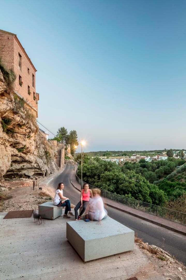In order to make the itinerary accessible and comfortable for all visitors, a route with a very low slope is projected throughout its entire route. Two intermediate flat spaces are proposed along the route to facilitate the rest of the visitors. One of them is in the background of the main promenade and the other at one end, marking the change of direction of the itinerary. Therefore, both spaces fulfil their function as halt, without detracting the unique trace of the path that marks the ascent slope. They are spaces that offer a place to rest, observe the landscape and they become meeting points between neighbours, those who kept this place alive in their memory.