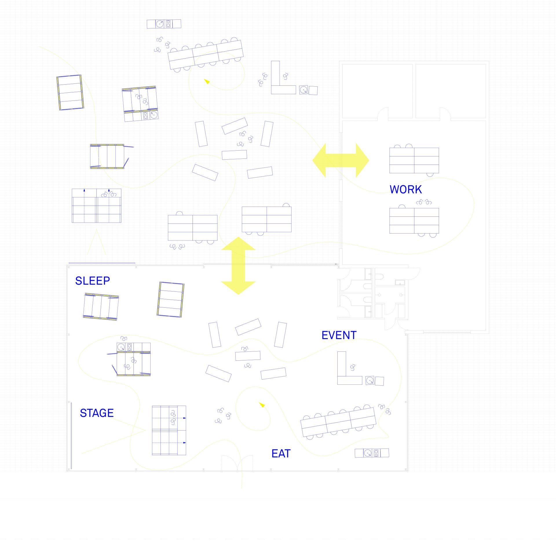 With changing professional environments the co-production of space needs to be tested. Specifically with vacancies, we have the possibility to experience collective placemaking rather than define it in advance. Therefore the structure needs to be modifiable in order to enable users.