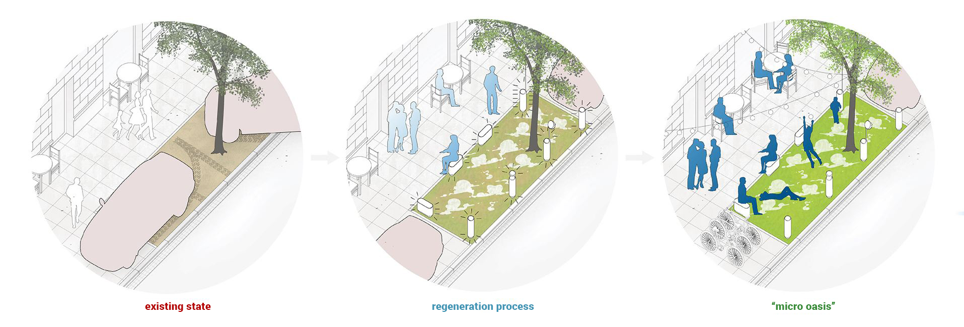 PARO is astreet furniture, which protects from the degradation of greenery, and through the steam supply of moisture, supports its regeneration. The spot locating form ensures flexibility in use in areas with different surfaces, preventing the entry and parking of vehicles in prohibited places.