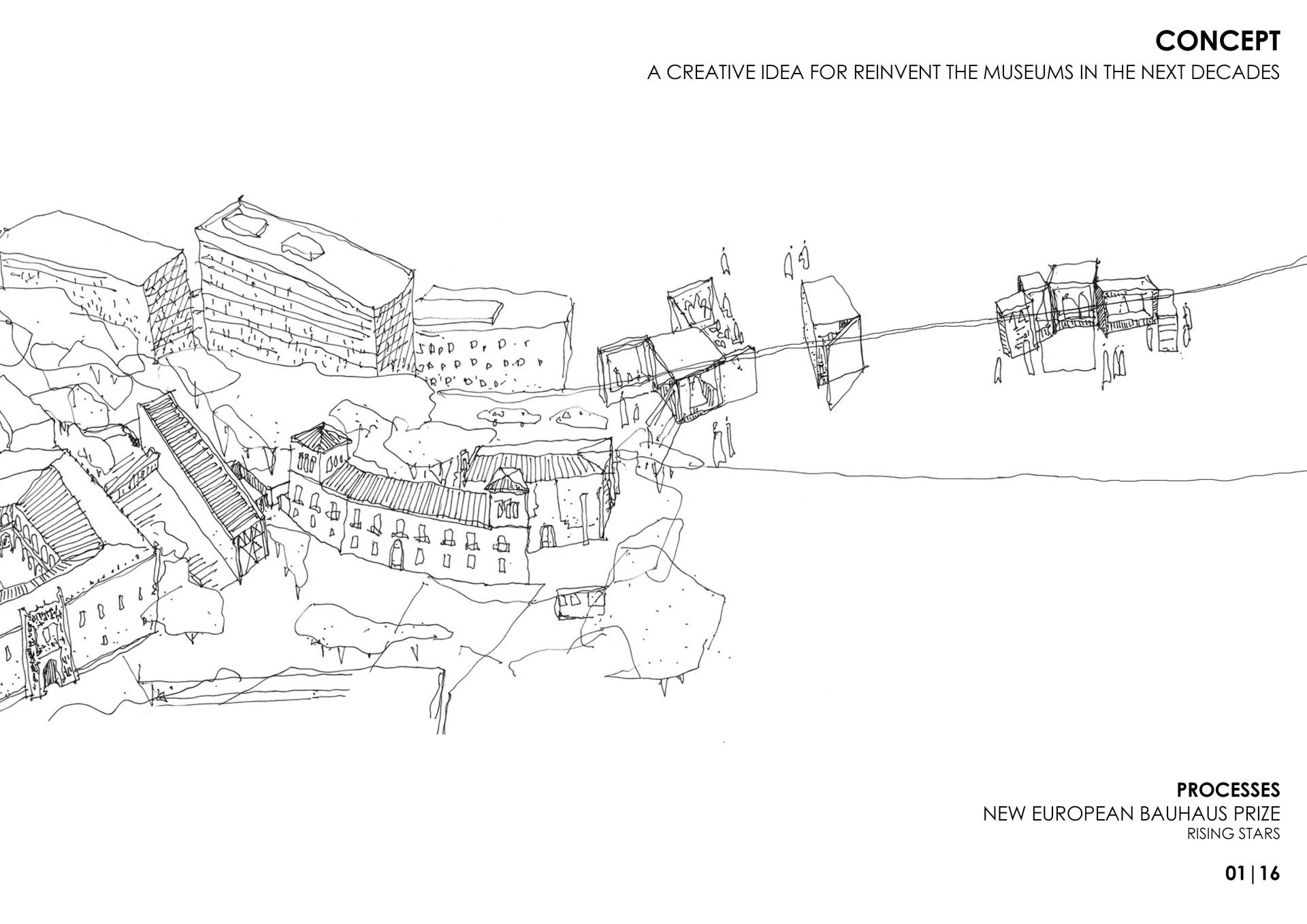 The history of Europe has always been linked to the avant-garde and artistic discoveries. Nowadays it is necessary to take on challenges such as the impact of tourism on our cities as well as facing the progressive aging of european population, the climatic emergency, the extreme urbanization and the rural exodus. PROCESSES is a creative idea and an alternative proposal for these issues. It is a typological reinvention of the museums as places in constant transformation connected to people.