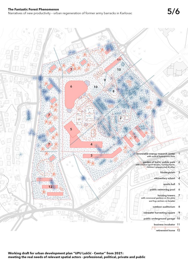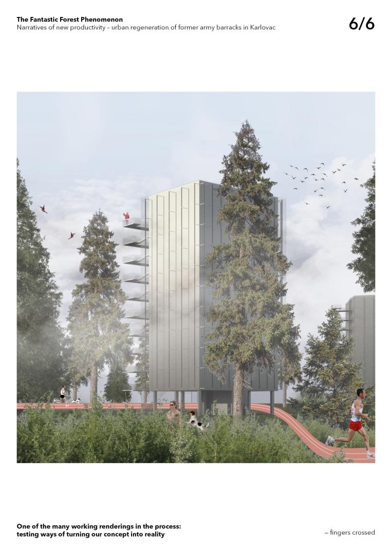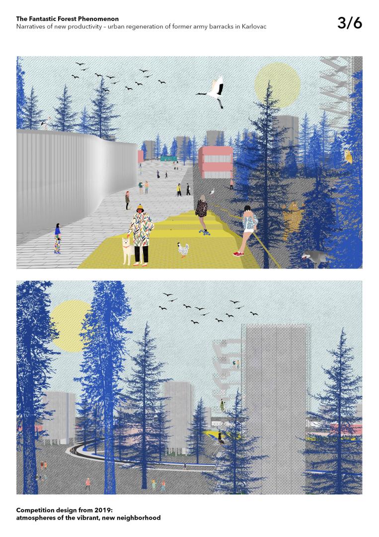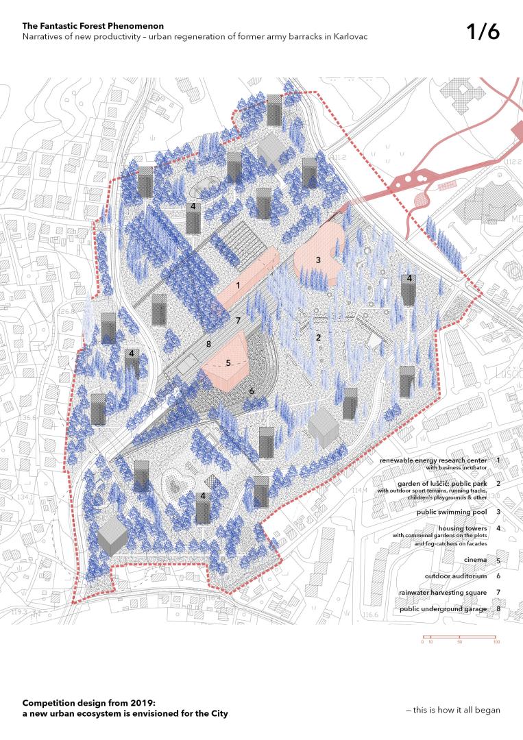 „The Fantastic Forest Phenomenon“ is an ongoing urban regeneration project that initially started out as an entry for the international „Europan 15: Productive cities“ competition in 2019, where it was awarded first prize for the location of Luščić, a disused brownfield site in Karlovac, Croatia. Afterward, the city commissioned an urban development plan that is currently being made based on the competition project, simultaneously taking into account certain new urban conditions and public needs that have surfaced in the year succeeding the competition.