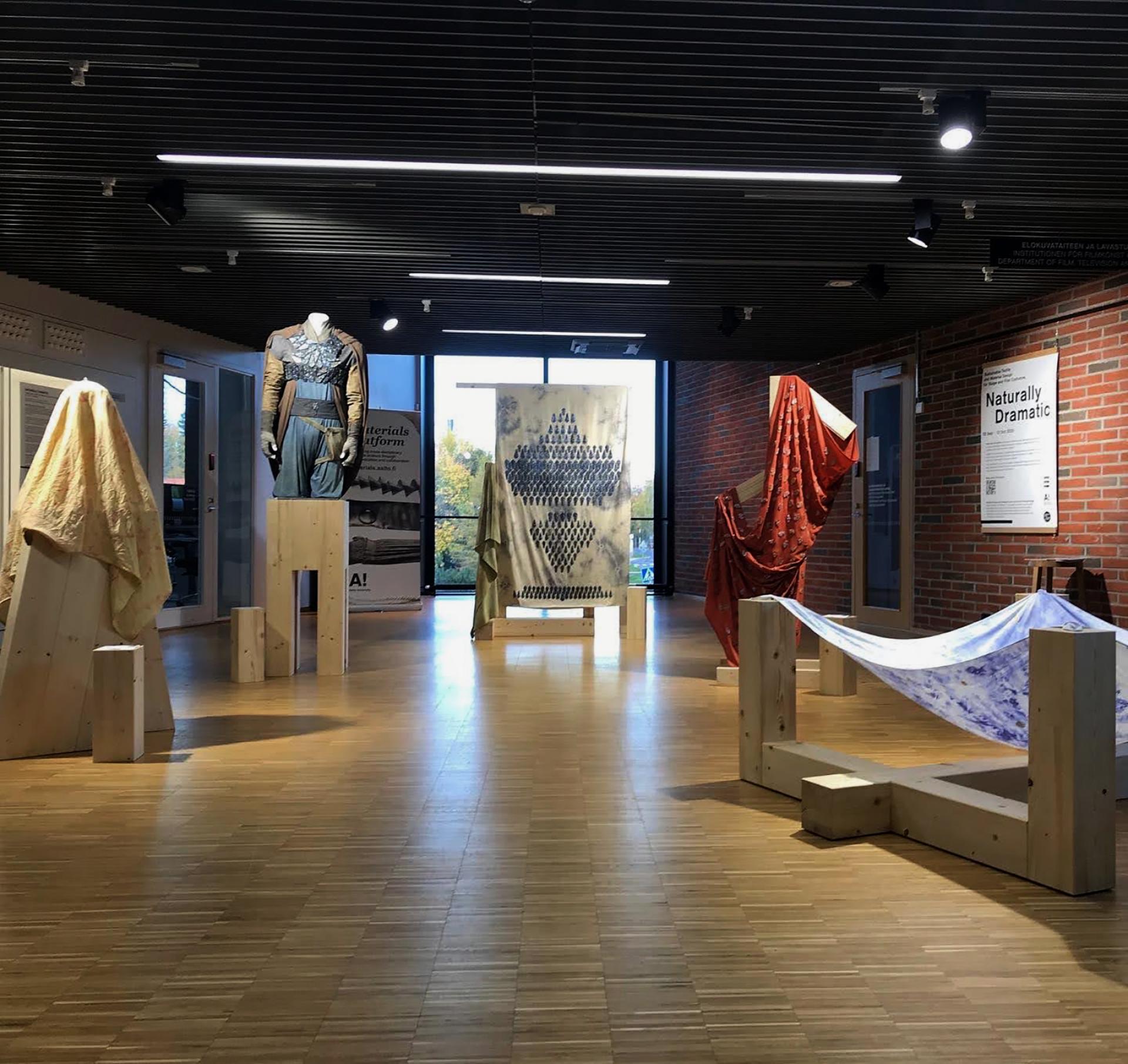 Naturally Dramatic aimed to interest a broad audience in the topic of biomaterials and costume design. During the run of Naturally Dramatic we offered online tours to an international audience, and in the process, we created a network of costume professionals, academics, students and interested citizens, and an ongoing discussion of the benefits of biomaterials. The online tours led to follow-up presentations about circular costume design at trade organizations like Reel Green in Canada, GTKos in Germany and Modeco in Switzerland. They also led to the next step of our collaboration, a biomaterial product trial with Aalto University and participating film productions. A further goal of the exhibition was to give first-hand, practical examples and advice about how biomaterials can be used for costume design. As a result, two costume students were inspired to use biomaterials for their thesis costumes.