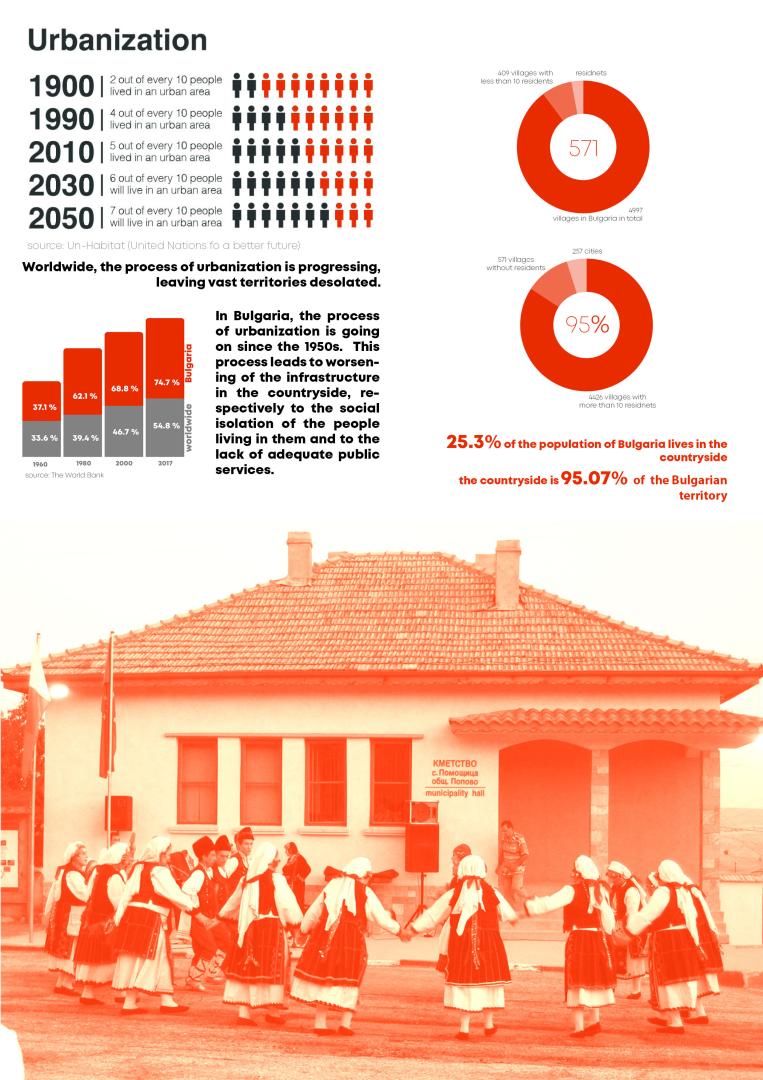 The depopulation of rural areas has highly affected the peripheral European countries, which are less economically developed. That is why, using Bulgarian village of Pomoshtitsa as a study-case, I aim to establish a rural development strategies that, when applied, result in sustainable recovery of depopulated and degarded rural areas in Eastern Europe.