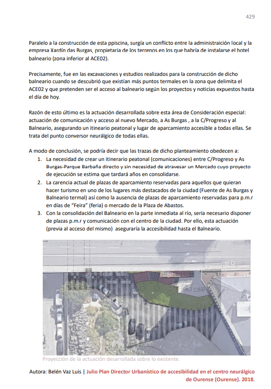 The world is not accessible.Urban planning does not have techniques or planning that support the inclusive and sustainable design of cities. Because of it, I created a new way for urban planning: an accesibility plan applied to regenerate the urban center of Ourense. Analyze streets and propose more accessible and green spaces but including neuroarchitectural factors to improving people's well´being.So, I created an architectural technique with neurological and sustainable parameters
