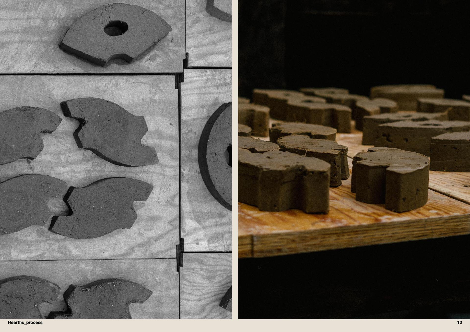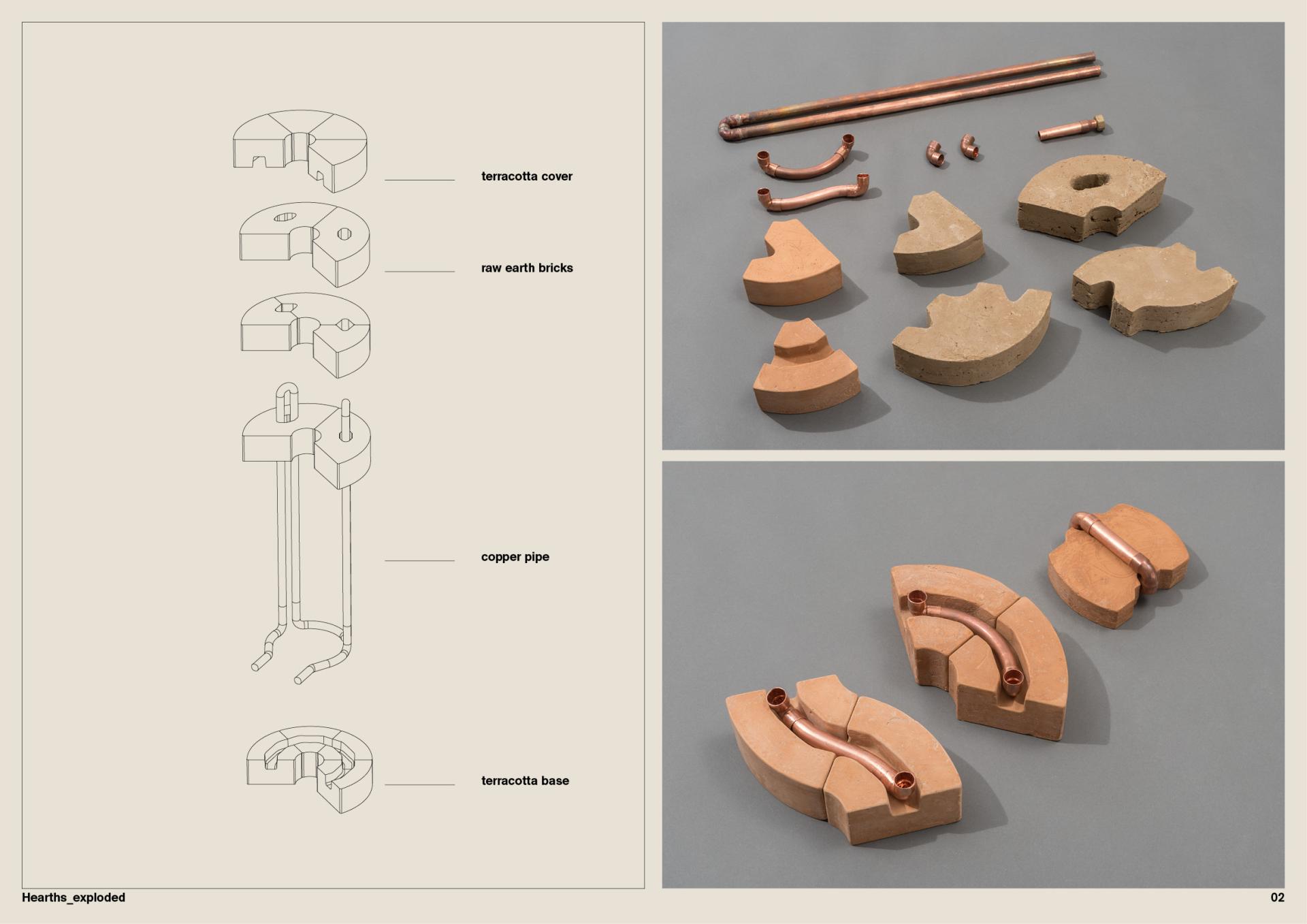 Hearths is not there to stay forever. Raw earth is a fully reversible material, and the bricks can be destroyed to become soil again, without losing any of its natural qualities. Therefore the material has the capacity of being recycled - and not downcycled, back into the product stream or harmlessly reabsorbed as nutrients into the environment without pollution. The use of raw earth as the main material gives the opportunity to us - users, communities, societies, of giving back to earth what we have been given. The system is part of a wider reflection about the concept of durability, reversibility in construction, and a nomad way of thinking and building with a design for end-of-life that leaves no traces.