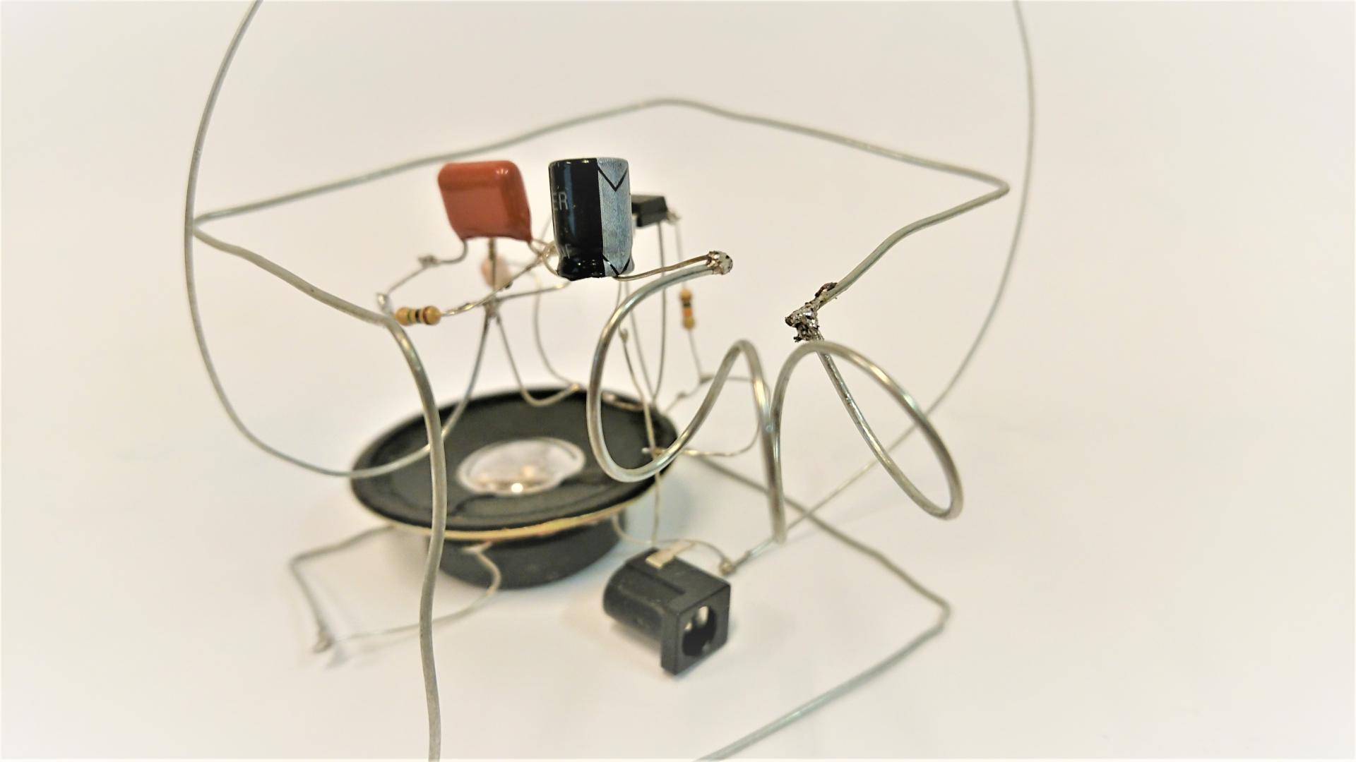 - Interactive sound sculptures with analog electronics (electronics + sculpture)