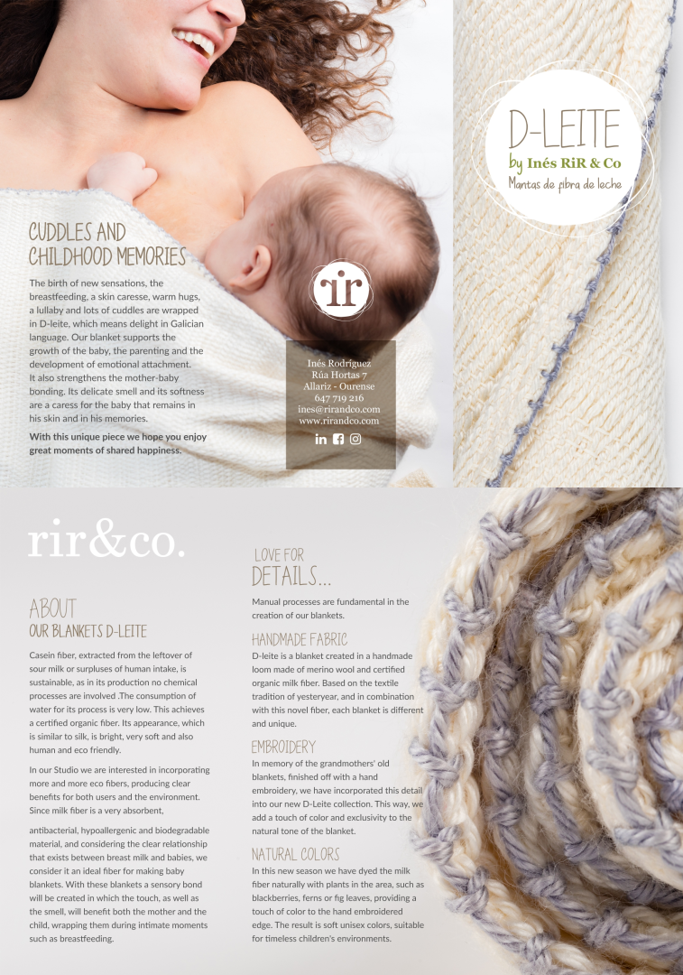 On the other hand, in the search for the manufacture of dairy protein fiber in Galicia, I have had contact with different dairy companies and research centers in order to carry out a fiber production project and participate as a creative and textile designer in it, generating products that enhance waste and generate benefits for people. There is interest from the blanket, but it remains to be defined and that companies consider that a textile artisan can be innovative.