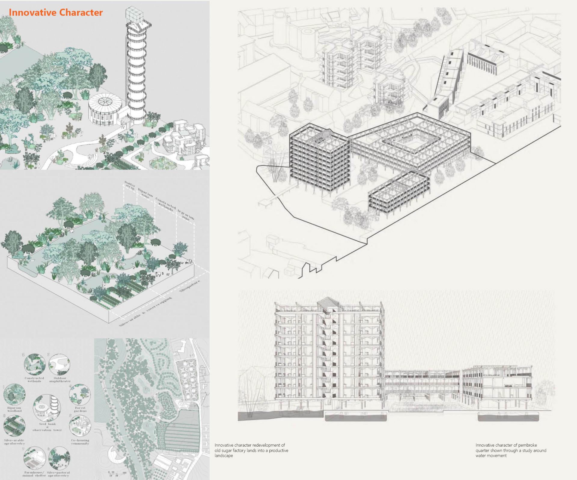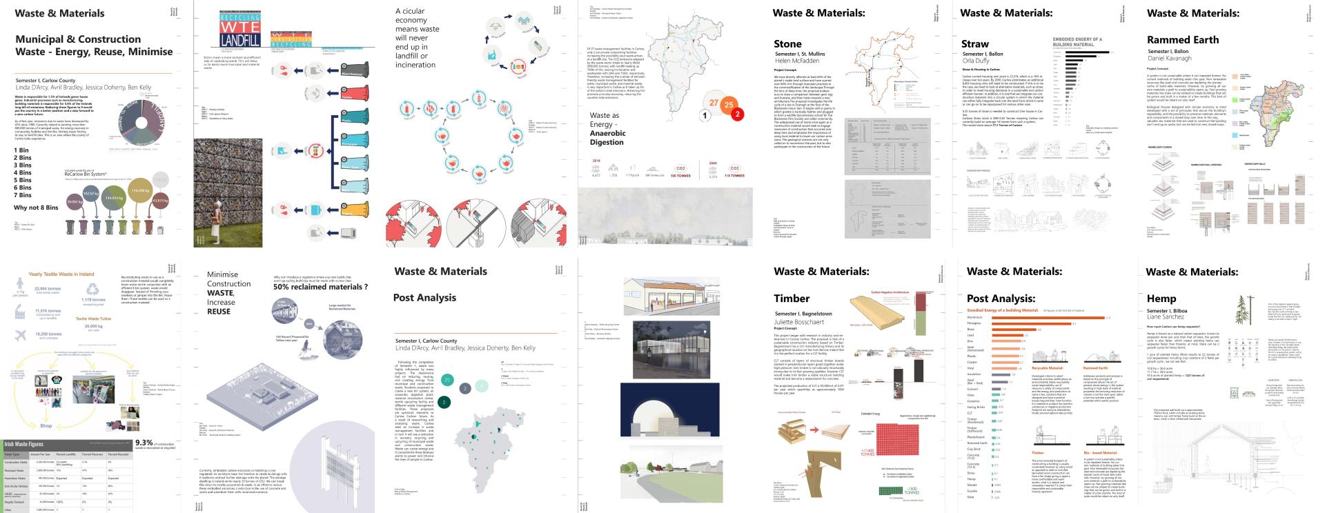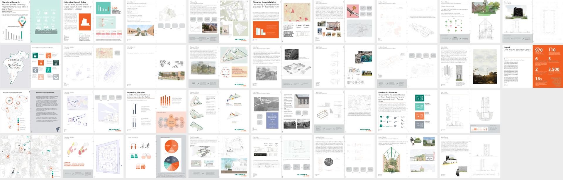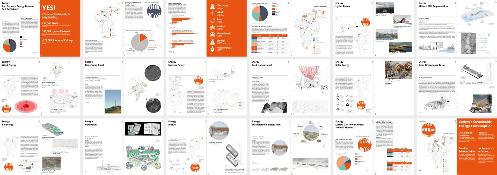 We have taken on the regeneration of Carlow through a sustainable approach to the built environment and protection of nature, with a carbon budget which is based in fact and credible in solutions. Our optimistic act of positive change demonstrates a body of work, suitable for a variety of multidisciplinary categories. We conceptually replaced Carlow’s dependency on finite energy and made it completely self-sufficient by 2050 using green energy and a variety of innovative production methods; wind turbines, hydroelectricity, widespread photovoltaic panels, and waste-produced biochar energy. This clean energy provides a carbon reduction of 170,000MtCo2 by 2050. The societal and environmental challenges we face can only be tackled through proactive collaborative efforts, a serious commitment to understanding the real consequences of our design decisions, and an ability to be flexible and agile in our approach.