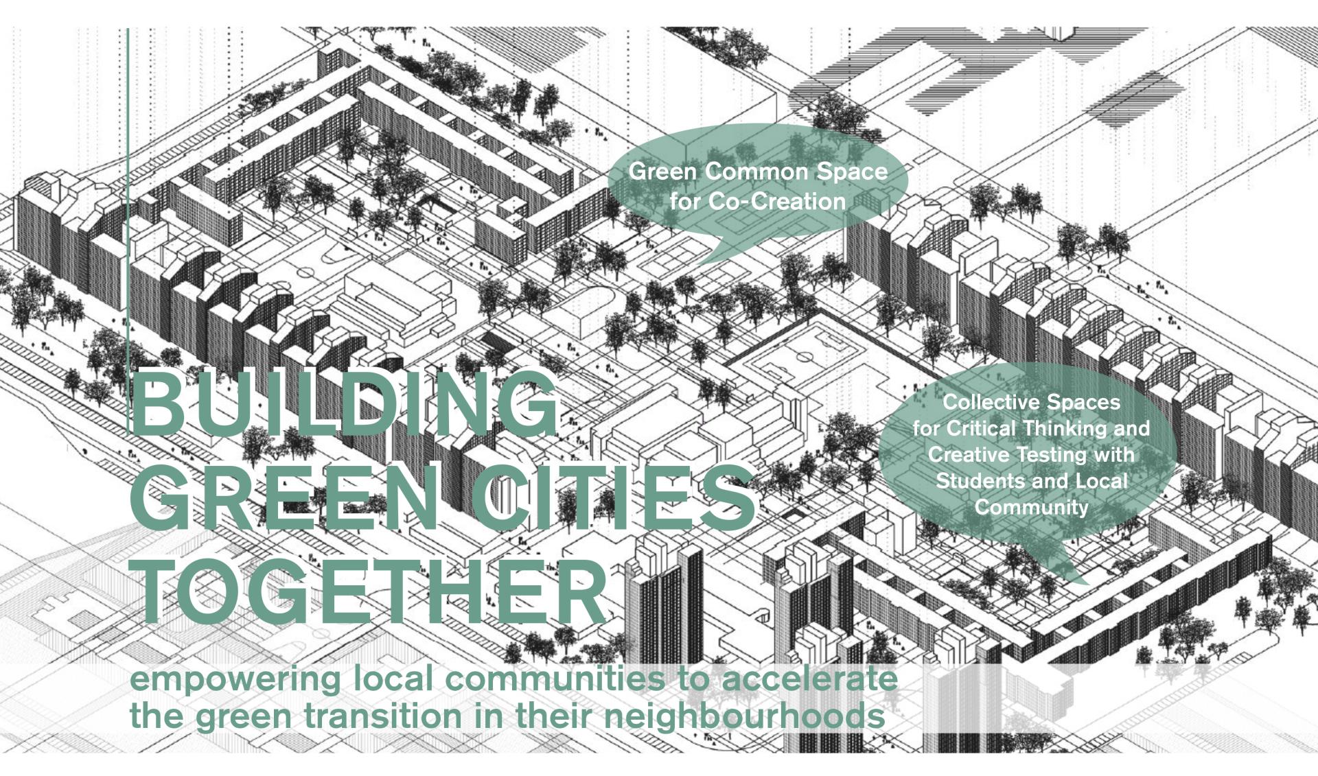 The project develops and applies an innovative education model that is testing participatory tools for empowering communities to accelerate the green transition and co-create shared places in a form of an urban experiment. Green common spaces of residential neighbourhoods evolve into collective spaces for critical thinking and creative testing with students and local community. The education-exploration and co-design prototype is a generative solution and adaptable for different European sites.
