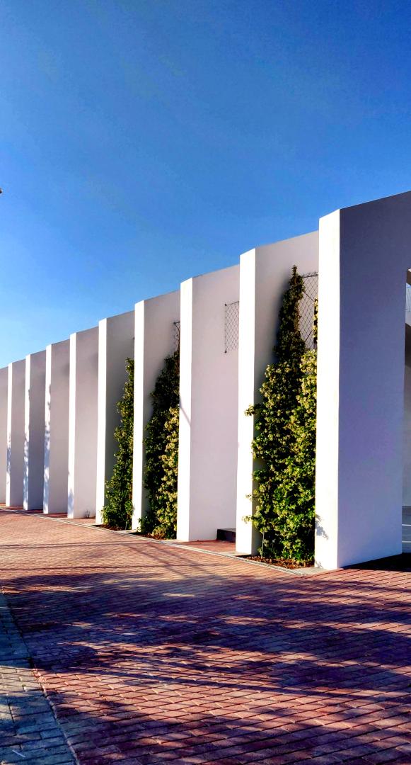 Finally, the courtyard works as an extension of the interior of the building. Taking into consideration that a large part of greek everyday life takes part in exterior spaces, it was important to provide the building with a large exterior space that is protected by the sun. The structural frames are used as a shade while the jasmine climbing plants cover the gaps providing shelter and also beautiful fragnance to the space, especially in the hot summer nights.