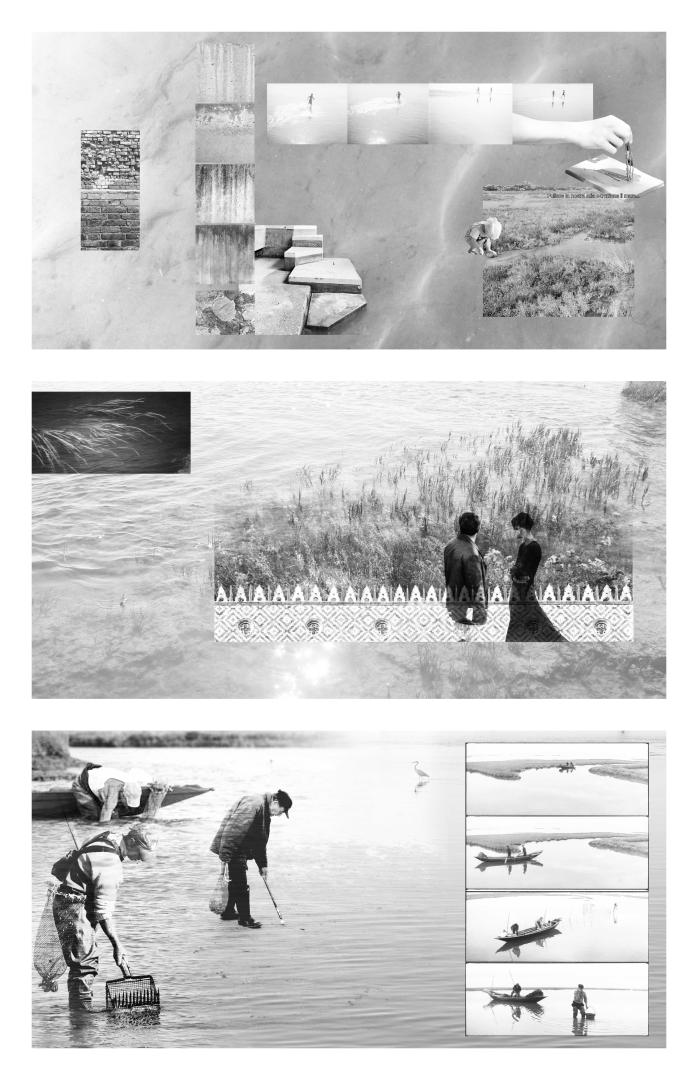 Project construction, ordinary and extra-ordinary maintenance play an incisive role regarding the effective performances of the design proposal. Expert local labour is directly involved in the process. Construction consists of building the permanent structures (dykes) that will accumulate sediment and carefully planting perennial halophyte species as Sarcocornia fruticosa, Limonium narbonense and Juncus maritimus. Ordinary maintenance occurs every 6-12 months, concerning at the same time both the image of the intervention (conservation) and the functioning (structural efficiencies). It is intended to be carried out by local fishermen, anglers, and workers, equipped with adequate means of transportation and working tools, but especially with territorial and geographical knowledge. Extra-ordinary maintenance will occur after powerful and unexpected natural events (heavy swells, thunderstorms, extreme acqua alta, etc.), and consist of checking on the structural efficiency.