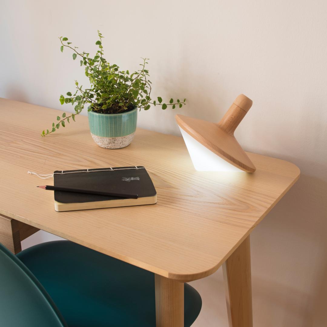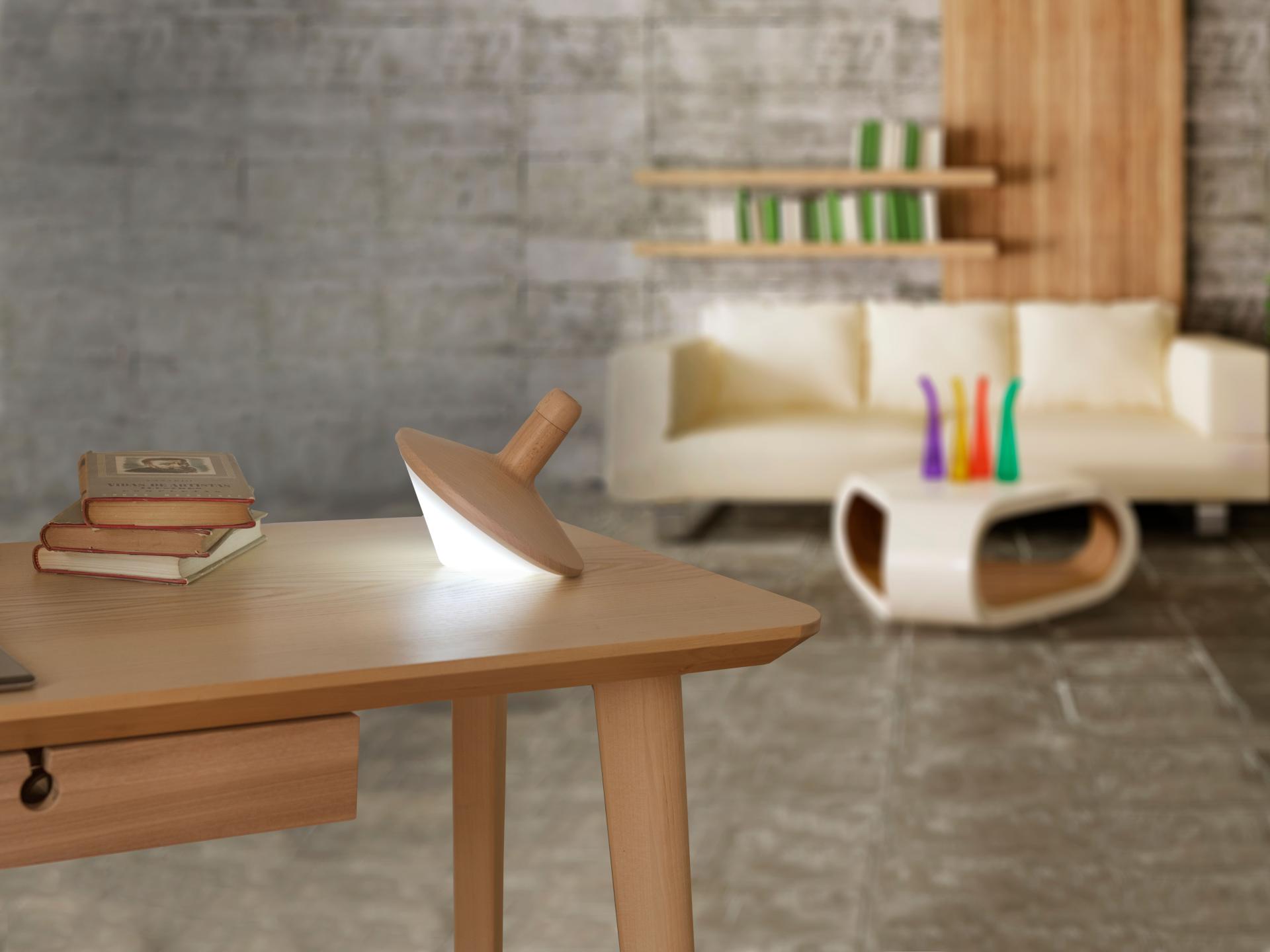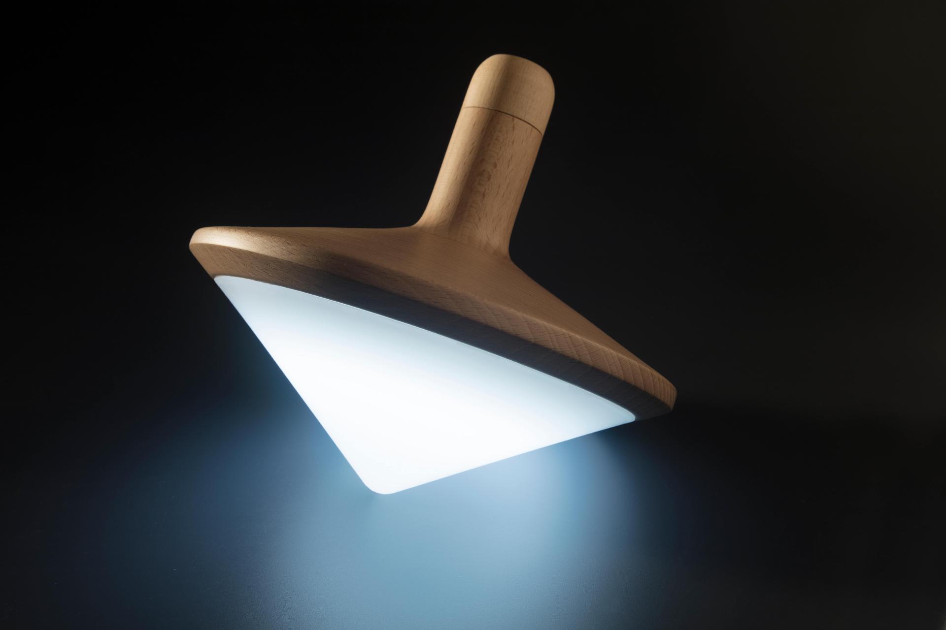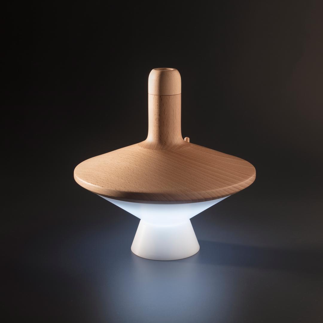 Baldufa is a unique and original mood lamp shaped like a spinning top made of natural FSC wood and recyclable screen polymer.