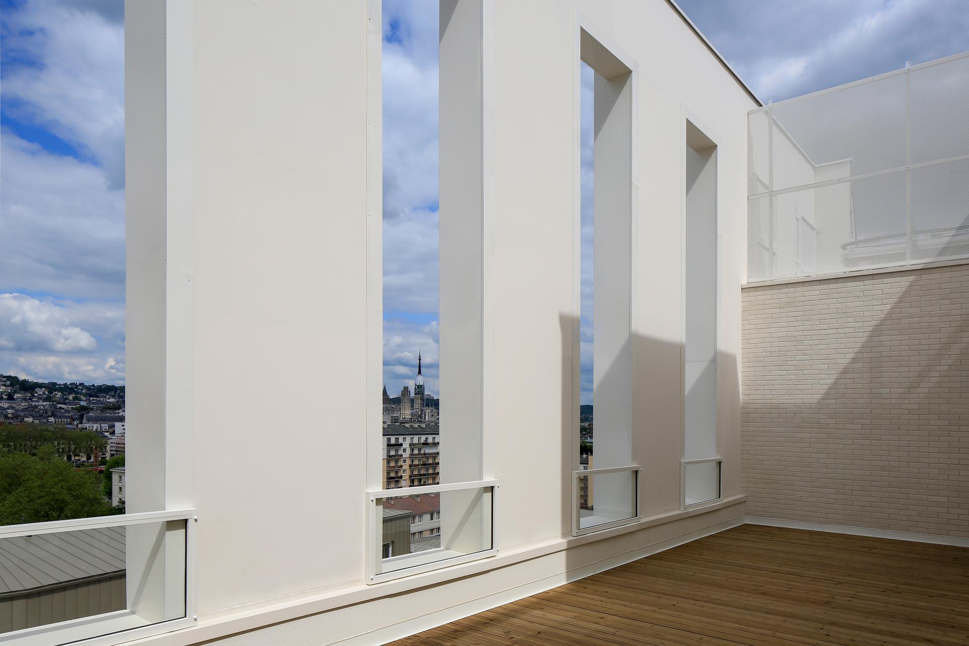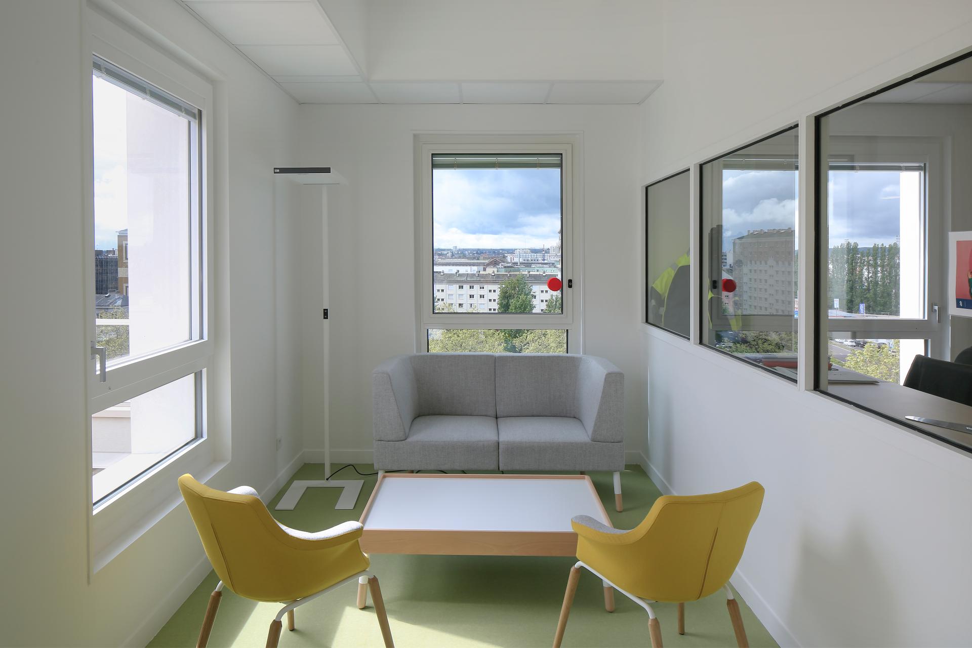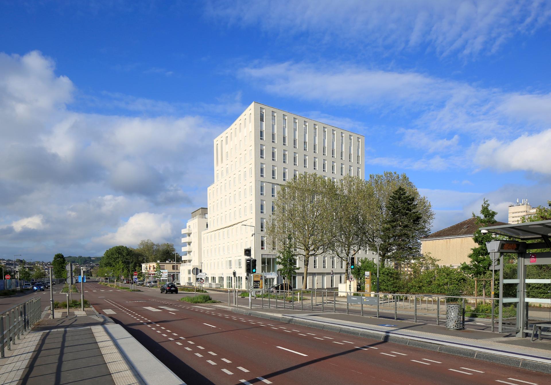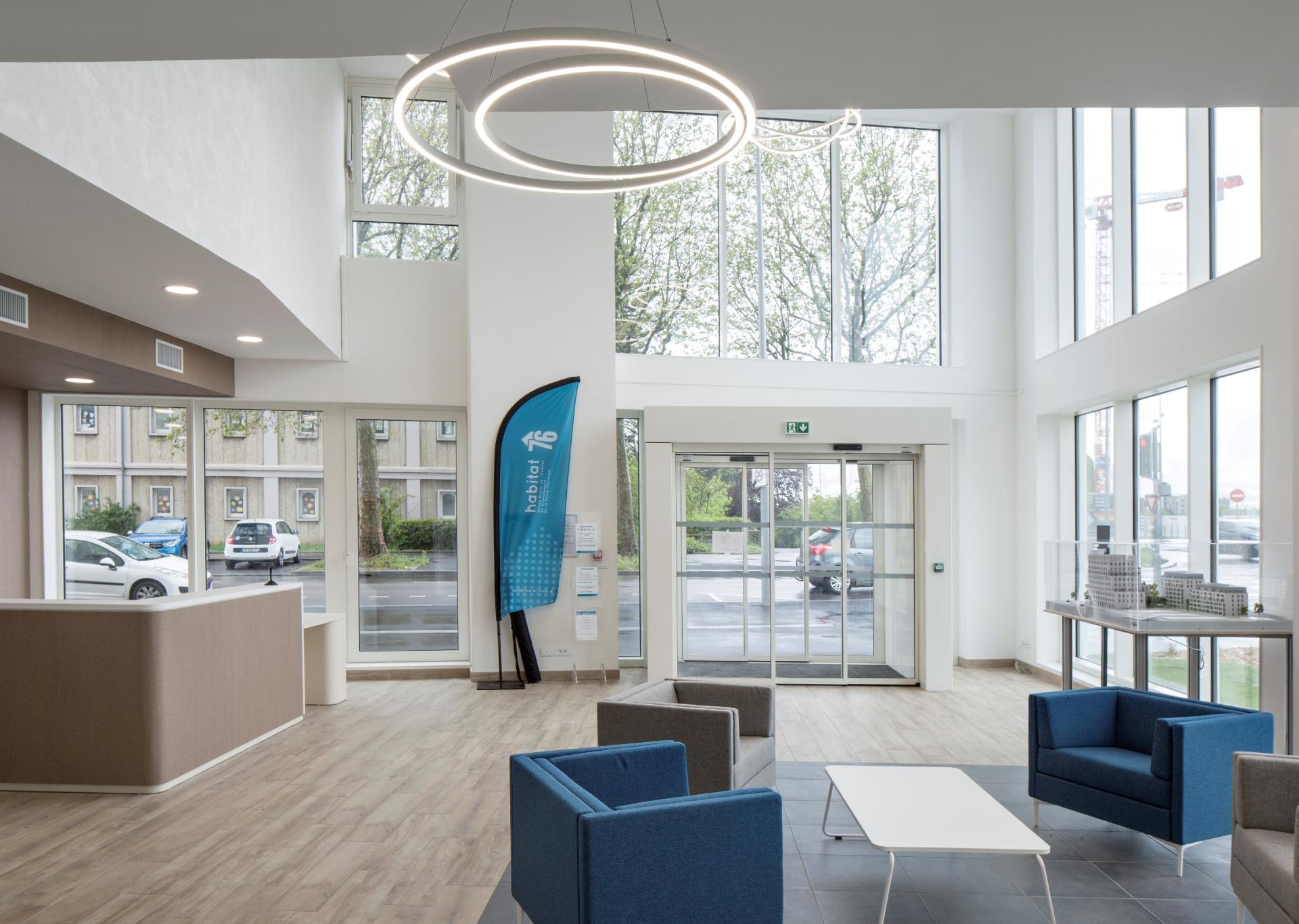 When you arrive in Rouen, this new building is immediately noticeable. It appears in your eyeline like a “signal tower”. The habitat 76 staff, the largest social housing agency in Normandy, have just moved into their new workspaces. The old premises no longer met either business needs or current environmental specifications. Therefore, a new, open, innovative and eco-efficient workspace was designed. This 6,000 m2 building encourages collaborative teamwork and meets the needs of its stakeholders. Spatium, a name chosen by employees, is the name of the new building. “The name echoes the philosophy of these new workspaces; spacious and airy, it aims to transcend usual organisational divisions and to promote co-construction," underlines Sébastien METAYER, Director of Property Assets and Sustainable Development. The new workspaces have been designed according to the flex-office philosophy, which means the offices are no longer allocated: each day everyone is allowed to set up work wherever suits that day. “Different kinds of spaces are available in order to stimulate interaction: individual offices, team spaces, coworking spaces and so on. Well-being at work has been at the heart of the project, with a room dedicated to sports and five outdoor terraces,” explains Eric Gimer, Chief Executive. The premises also include a public reception area. From the start of the project, employees were involved in discussions to co-define needs, uses and ensure that the project met their expectations and requirements. On the technical side, the building is innovative and environmentally friendly. The building’s energy performance is optimised thanks to the thermal perform of building envelopes and the use of heating/cooling by geothermal energy. Expected greenhouse gas emissions are extremely low : 14 tons of C0² per year, compared to 197 tons for the previous building. The old head office will now undergo a major energy renovation.