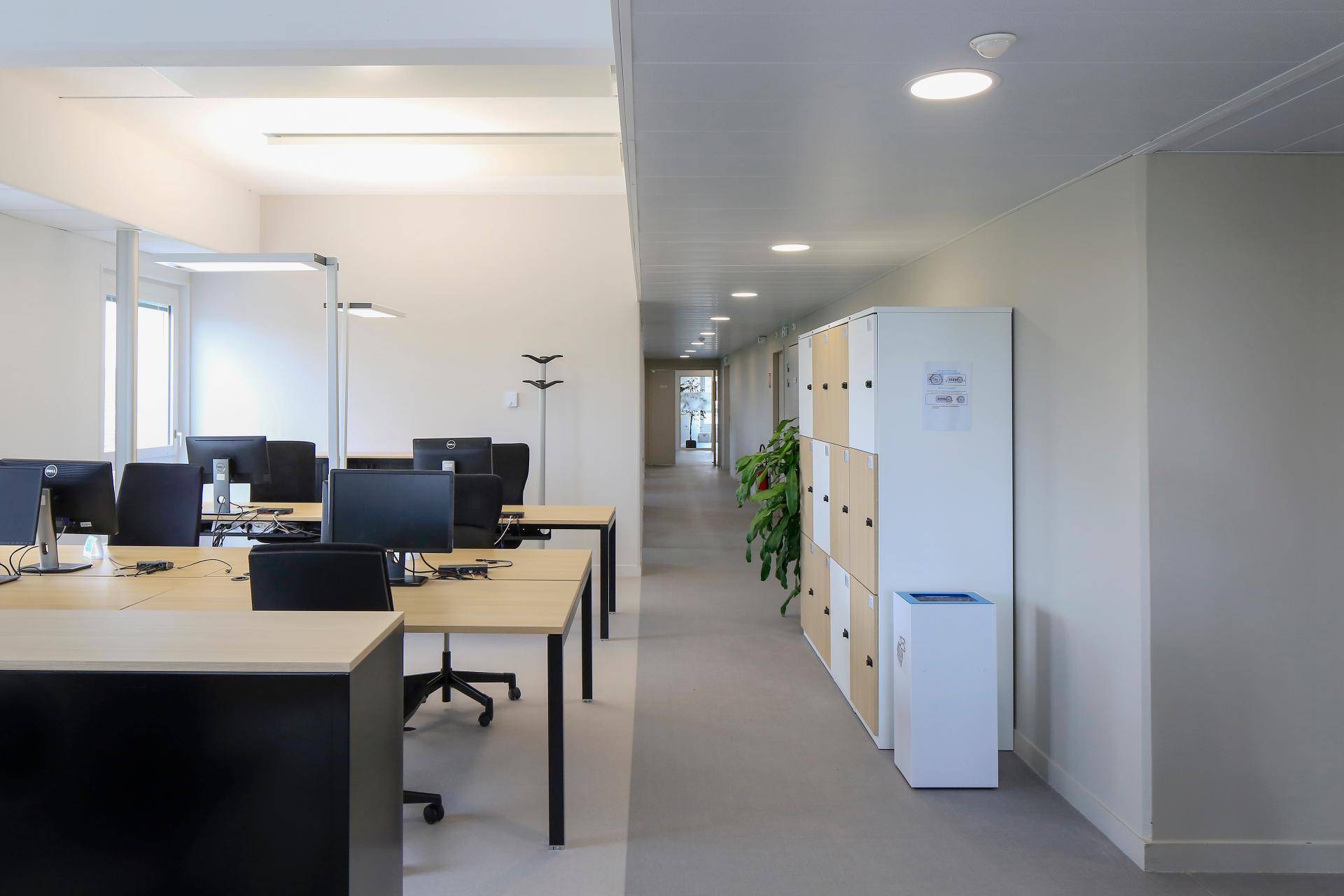 - A smart building: Spatium uses dynamic BIM technology. In addition to the 3D digital model used for its design and construction, the building is equipped with numerous sensors that facilitate its daily maintenance, with shared data accessible to the employees and technical staff. Through instant access to dynamic and static information, it is possible to report anomalies in a specific zone and create or monitor intervention requests. “We have access to energy consumption in real time. We can control the lighting remotely as well as the 3-sided blinds and the temperature (dual flow CMV),” says Mathieu Wozniak, Project Manager. The main objectives are time saving, employee comfort and control of energy consumption.