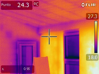 The radiant wall is maintained at about 30º throughout the winter and by increasing the thermal inertia of the existing structural walls, the temperature inside the house is very mild and does not cause condensation.