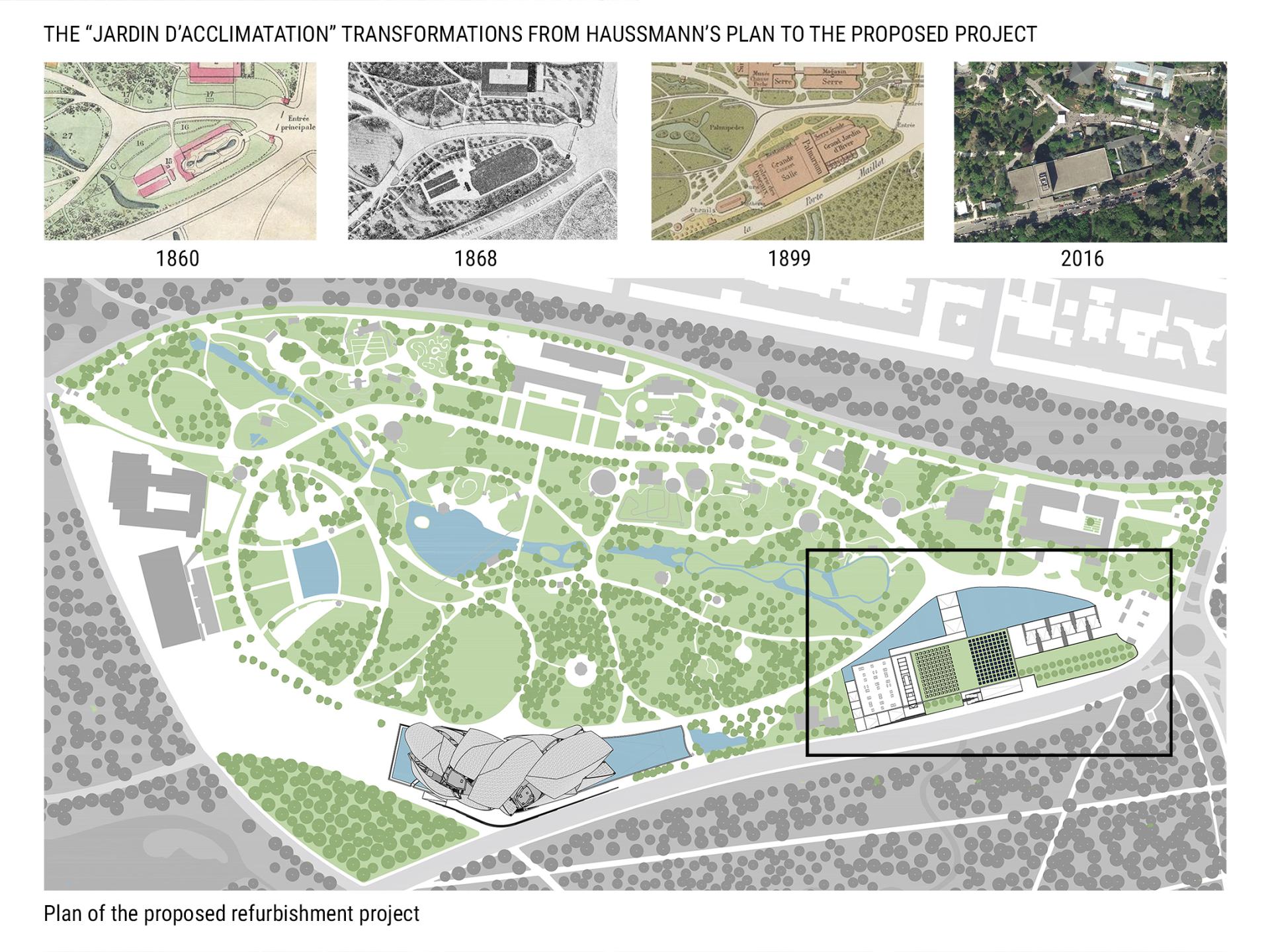 My refurbishment project embraces the original vision of the nearby Jardin d'Acclimatation, aimed to adapt plants and animals to the Parisian climate, with the conception of a building able of responding to environmental changes through natural resources, improving energy efficiency by minimizing lighting, heating, and cooling loads and enhancing human comfort.