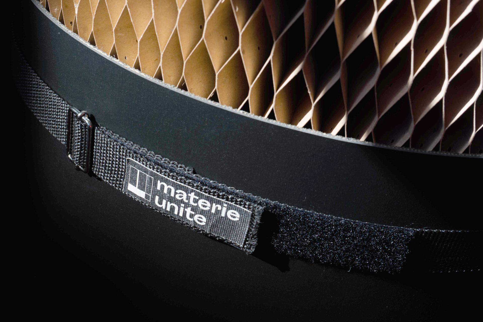materieunite is built around a key material: sustainable cardboard. This material in fact is sourced via certified supply chains: 80% of the cardboard either comes from recycled material, and the remaining 20% is sourced from FSC certified sources. Further to this, thanks to its extensive use in the packaging world, cardboard is produced and can be found with the same measurements and characteristics all across the globe, which links to the project’s third sustainability objective.