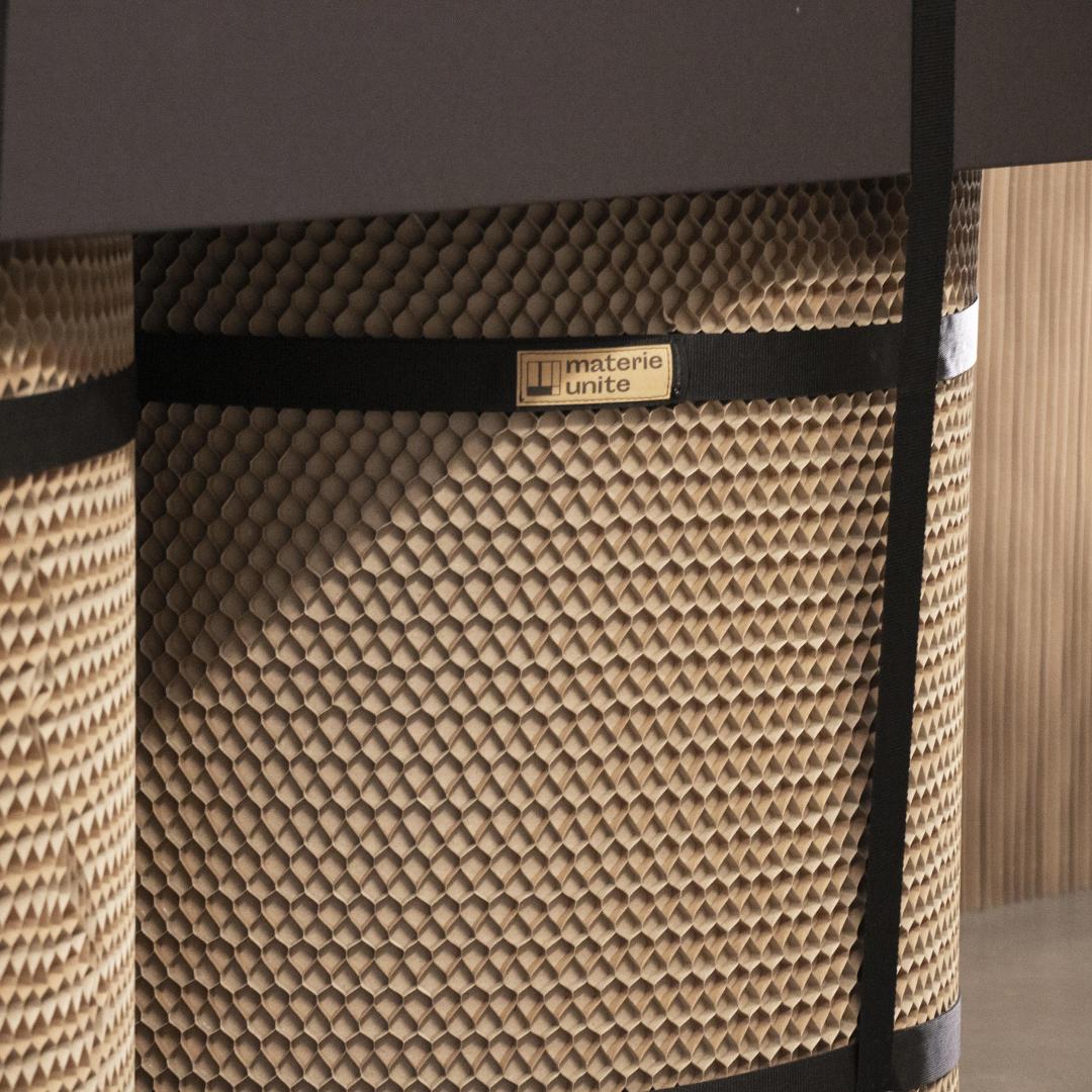 Recycled materials, digital production, parametric project design and made in Italy are at the core of materieunite. We design and create permanent and temporary spaces through using recycled cardboard and other materials which are either recyclable or recovered from supply chain waste.