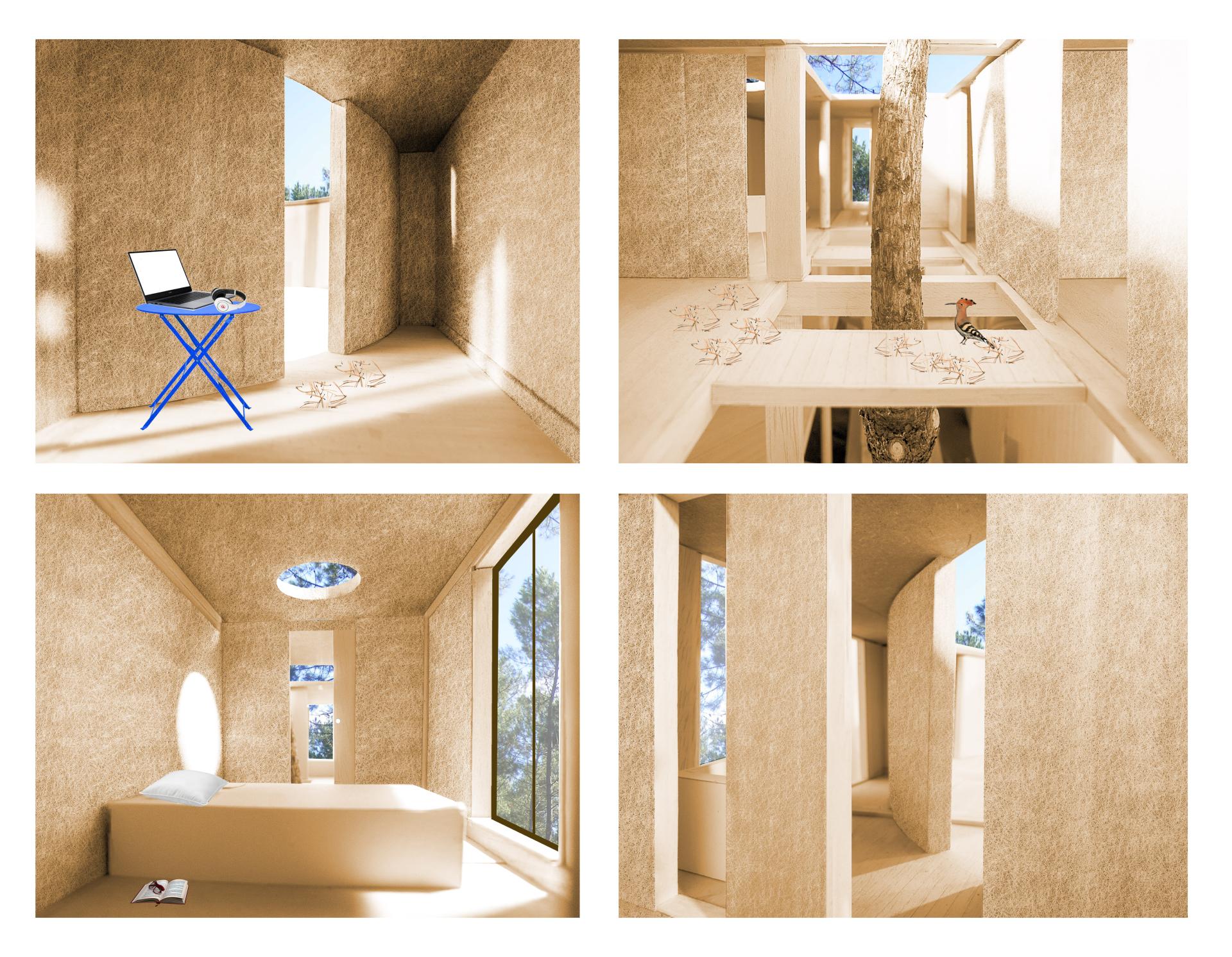 Originally, the project came from a graduate diploma at ÉCOLE NATIONALE SUPÉRIEURE D’ARCHITECTURE DE VERSAILLES received with honours by a jury of eight french teachers and architects under the direction of the architect CÉDRIC LIBERT in 2016. The school is one of the twenty French architectural public schools, led by the French ministry of culture, delivering the diploma of architecture in France. The thematic issue of this diploma was domestic architecture. It followed a deep study of one semester on domestic architecture through the traditional farmer house and contemporary projects and several visits through the region. The Residence of Landes had emerged from this large fertile and complete research.In 2017, thanks to the participation of an engineer and friend BASTIEN BETH (born in 1993) specialized in ecological buildings and graduated from ÉCOLE POLYTECHNIQUE FEMININE (SCEAUX) we presented the project in the TROPHÉE BETON and we were rewarded with the second prize. The director of the jury was the french architect PAUL CHEMETOV. The competition recognized the innovative characteristics of the concrete of needle pines. The prize was organized by three french associations: BÉTOCIM, CIMBÉTON and FONDATION ECOLE FRANÇAISE DU BÉTON. Following this prize, in 2018, the project has been presented at the MAISON DE L’ARCHITECTURE in PARIS for an exhibition.To finish, the residence is innovative because it has a very low ecological footprint and is mainly built with a concrete of pine needle that is biosourced. The material is an innovation that has been designed in association with different innovative organizations. First, the design of the material has been studied in the region by the CRED (CENTRE DE RECHERCHE ETUDE ET DEVELOPPEMENT ) FROM IUT BORDEAUX 1 and LRPC (LABORATOIRES RÉGIONAUX DES PONTS ET CHAUSSÉES) OF BORDEAUX AND TOULOUSE. To conclude, the realization of the product itself was realized with an innovative firm : CESA CHAUX ET ENDUIT DE SAINT ASTIER.