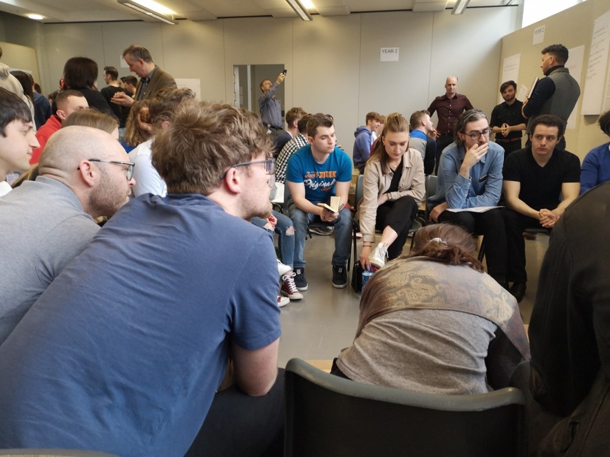 The project piloted a new form of large scale co-created curriculum design through a series of open and inclusive workshops, in contrast to traditional team meeting practices. It created a ‘safe space’ in which the wider community of students, lecturers, and external stakeholders could take time out of normal duties, by the lead academic manager cancelling classes and extending invitations, to engage in a forward-looking creative design process .