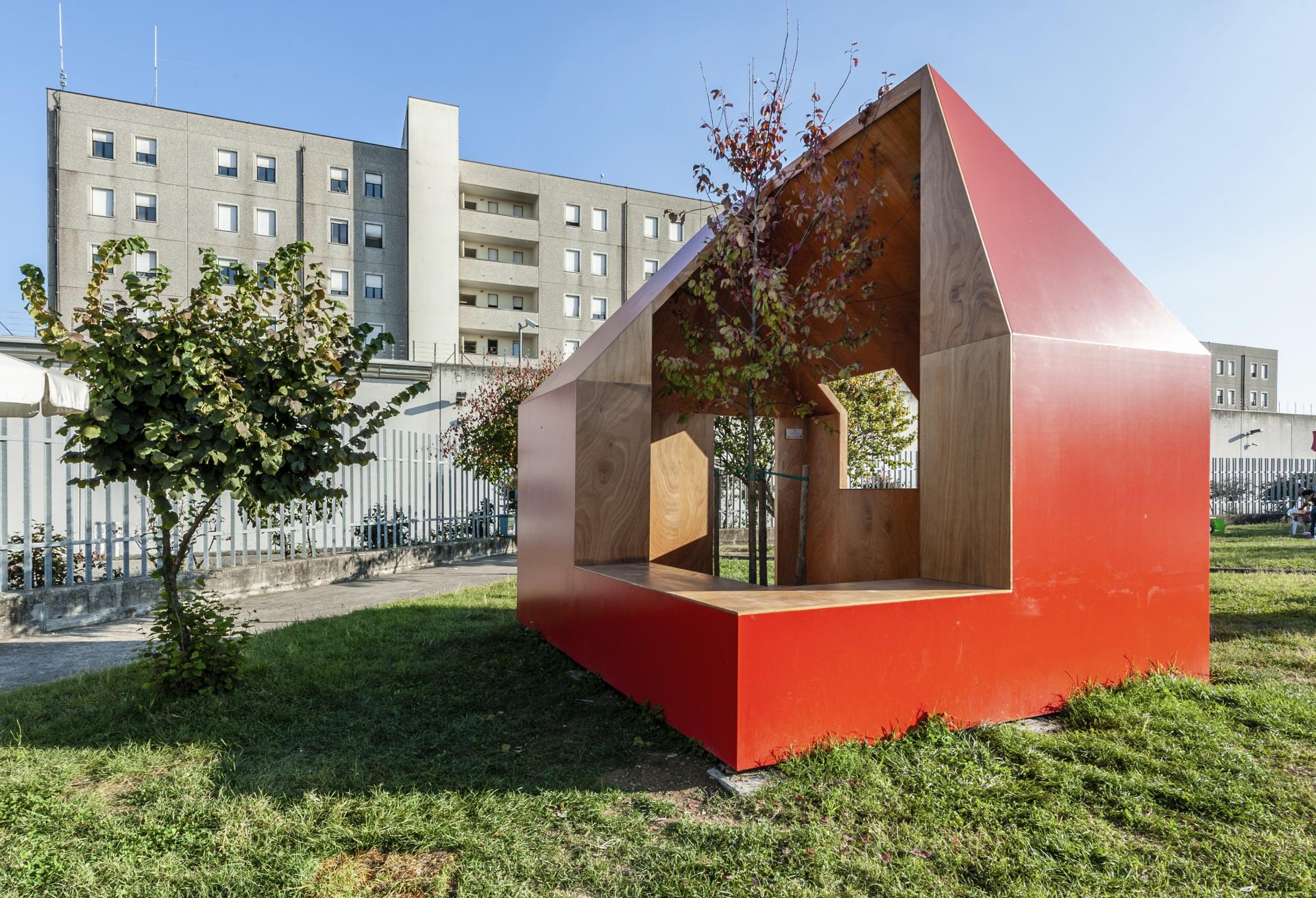 the "Little Red House", a wooden pavilion for parents who are in the prison to meet and to play with their children: it interprets the issue of affectivity. It was opened in 2018, after a two-year process of co-design and construction;