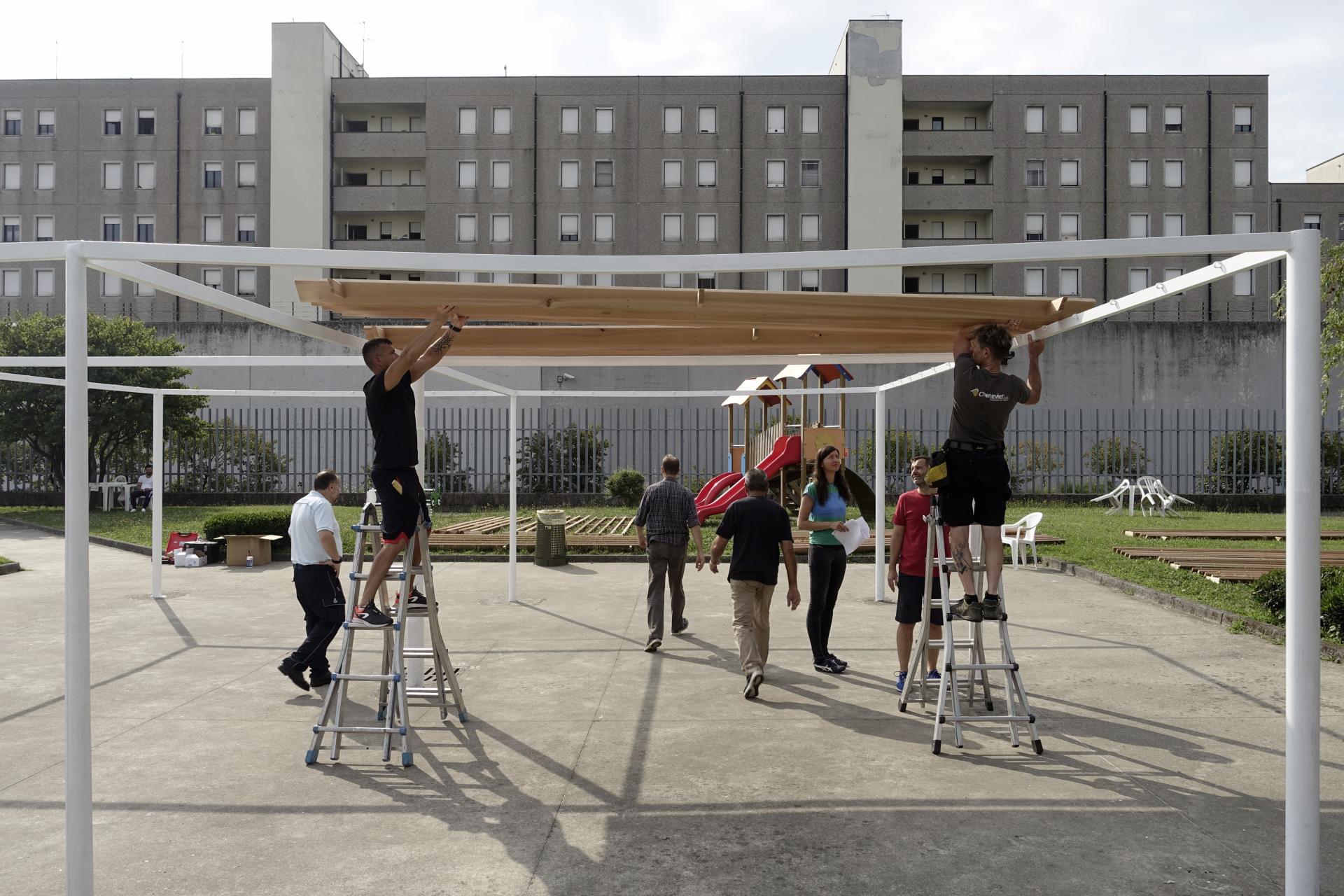 - In both cases the projects were participatory. The different players actively collaborated for the self-construction; the prison administration, the civil society - Civicum Onlus financed the pavilion and Italia Nostra Milano Nord Onlus donated the tree - and the companies Rimaflow and Chenevier has provided the professional workers.