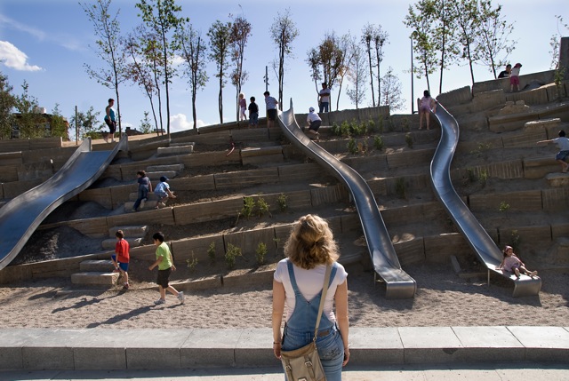 The Madrid Río project includes the re-organizing of 6 miles of public space along the banks of the River. Passing through the city, the design encompasses 360 acres of parks, a dozen bridges and 14.8 acres of public and sports facilities, art centers, an urban beach, children’s areas and cafés, and the restoration of the river’s hydraulic architectural heritage. In addition, a master plan was extended over an additional 1,680 acres to ensure the public space in the districts closest to the river are given a prominent role in the wider urban context. The complexity of work involved in the construction of the tunnels provided us with an unprecedented opportunity to better anchor the city of Madrid within its natural surroundings. The project establishes a physical and conceptual continuity, which did not previously exist, between the city center and the valuable countryside that surrounds it, and as a result, the River Manzanares has been transformed into the point that connects the city to its geography. On top of this huge “underground construction” vegetation was employed as the predominant material, in order to construct a dense and ecologically rich environment that would work as a living landscape on an inert underground substrate. Almost half of the project’s surface area exists on top of the tunnels, making complicated technical services and details essential to the success of the project.