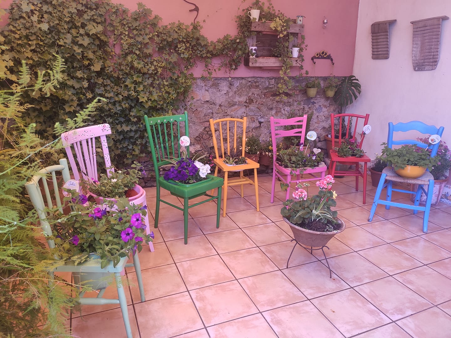 Finally, the chairs are gathered and picked up in the junkyard and clean point, donated by families of the children who will be in charge of their care. The paint is provided by the families or the association. Plants are donated by neighbours, others are from individuals in the assotiation and a few are bought to the local florist.