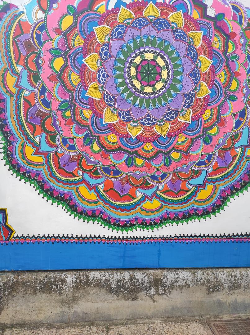 As a follow up for the awning idea, the possibility of beautifying the facades of the village came up and, reusing the fabrics donated by the neighbours to paint the mandalas on them, decorating the windows and balconies where plants had previously been placed.