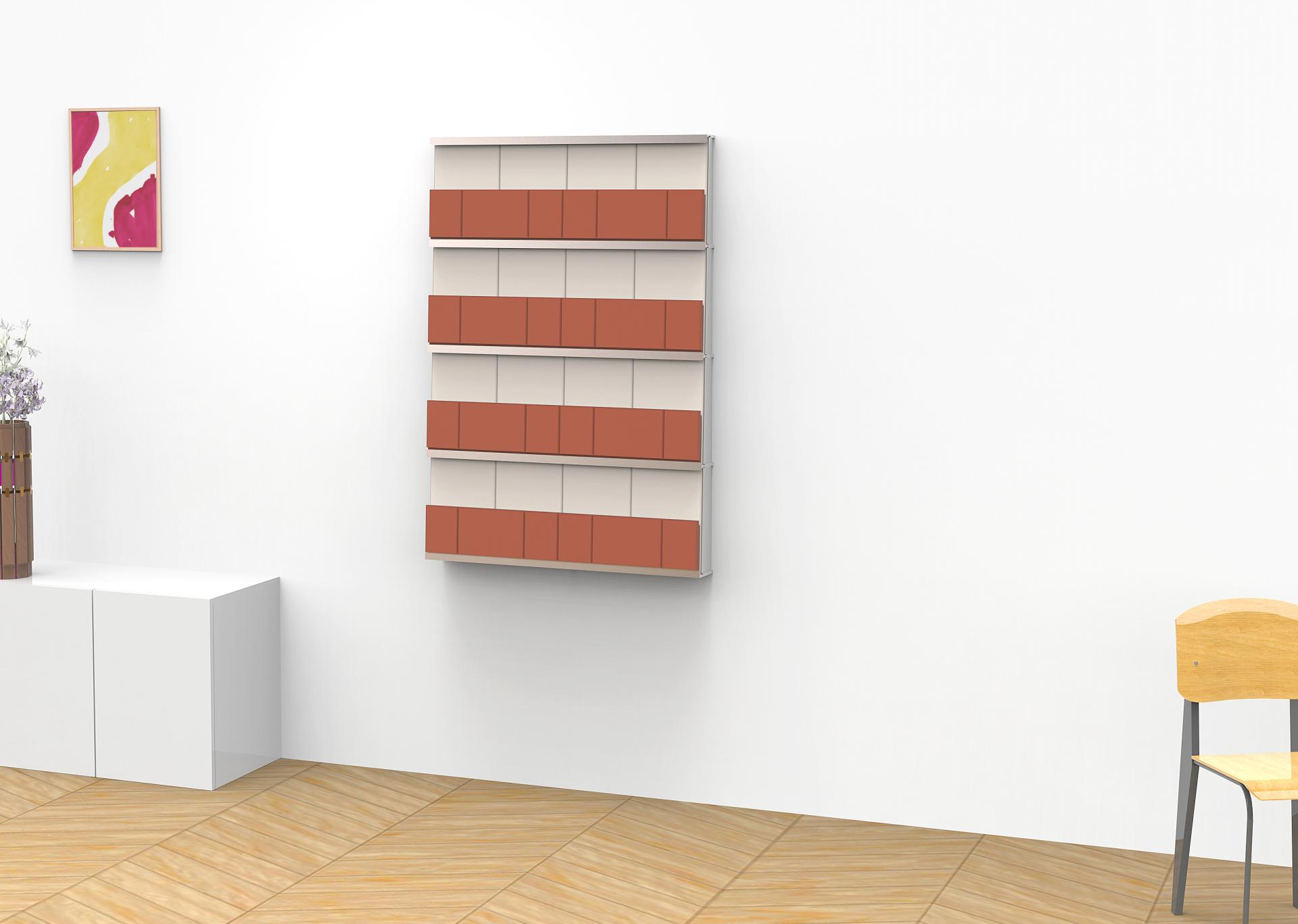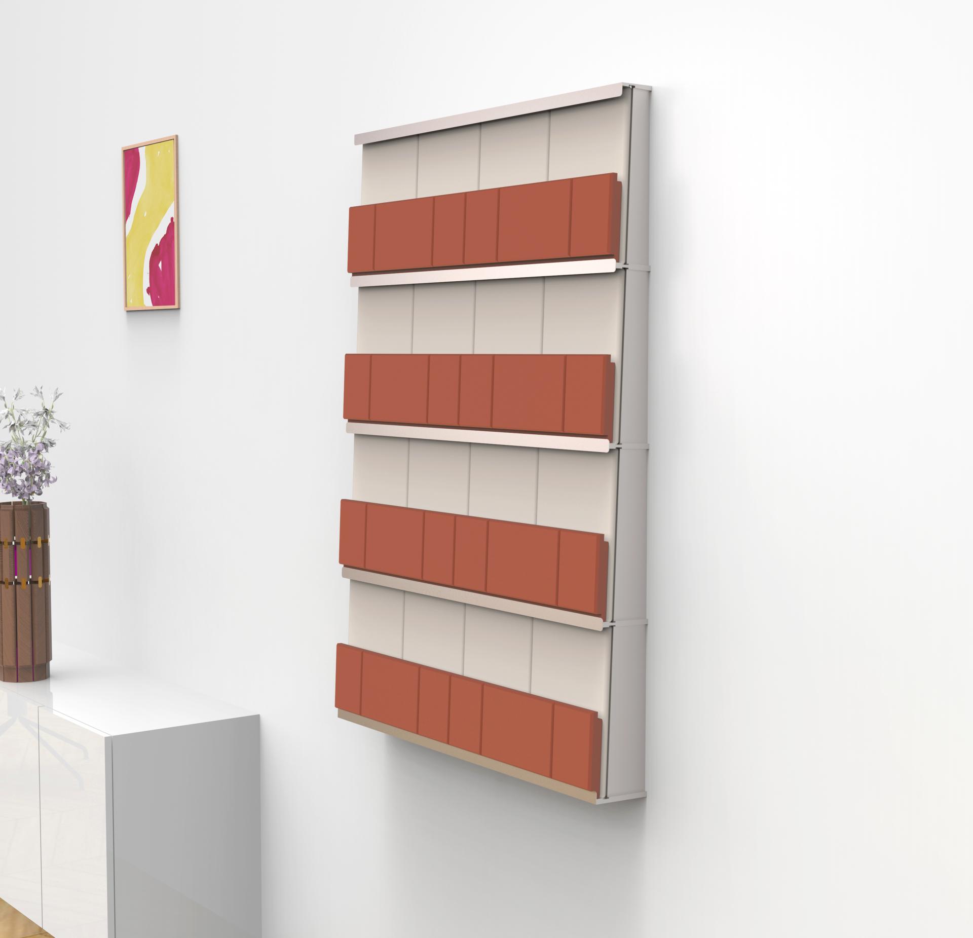 This project is thought as an heating device that goes on a wall, therefore the esthetic of it as to be discreet in order fit well in a room, but also must have an identity, that is why its a structure in steel that welcomes panels in clay, the panel are visible an offers a rhythm, in the idea of a painting for example. The heated bricks that can be put on the device will make the pattern change and evolve.