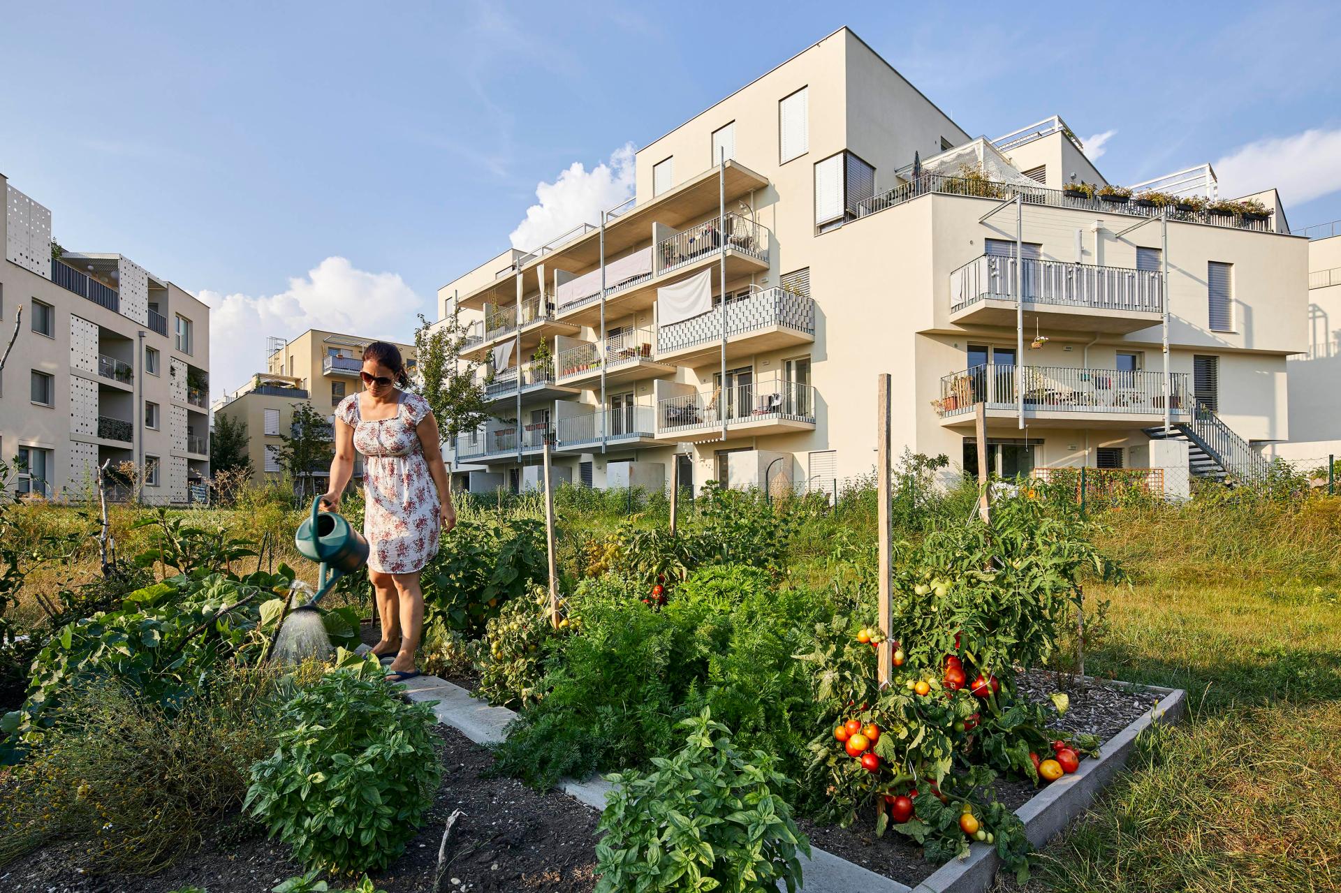 On three sites, three teams of architects created an attractive, homogeneous urban arrangement with open spaces, courtyards with edible plants and a spacious community garden.