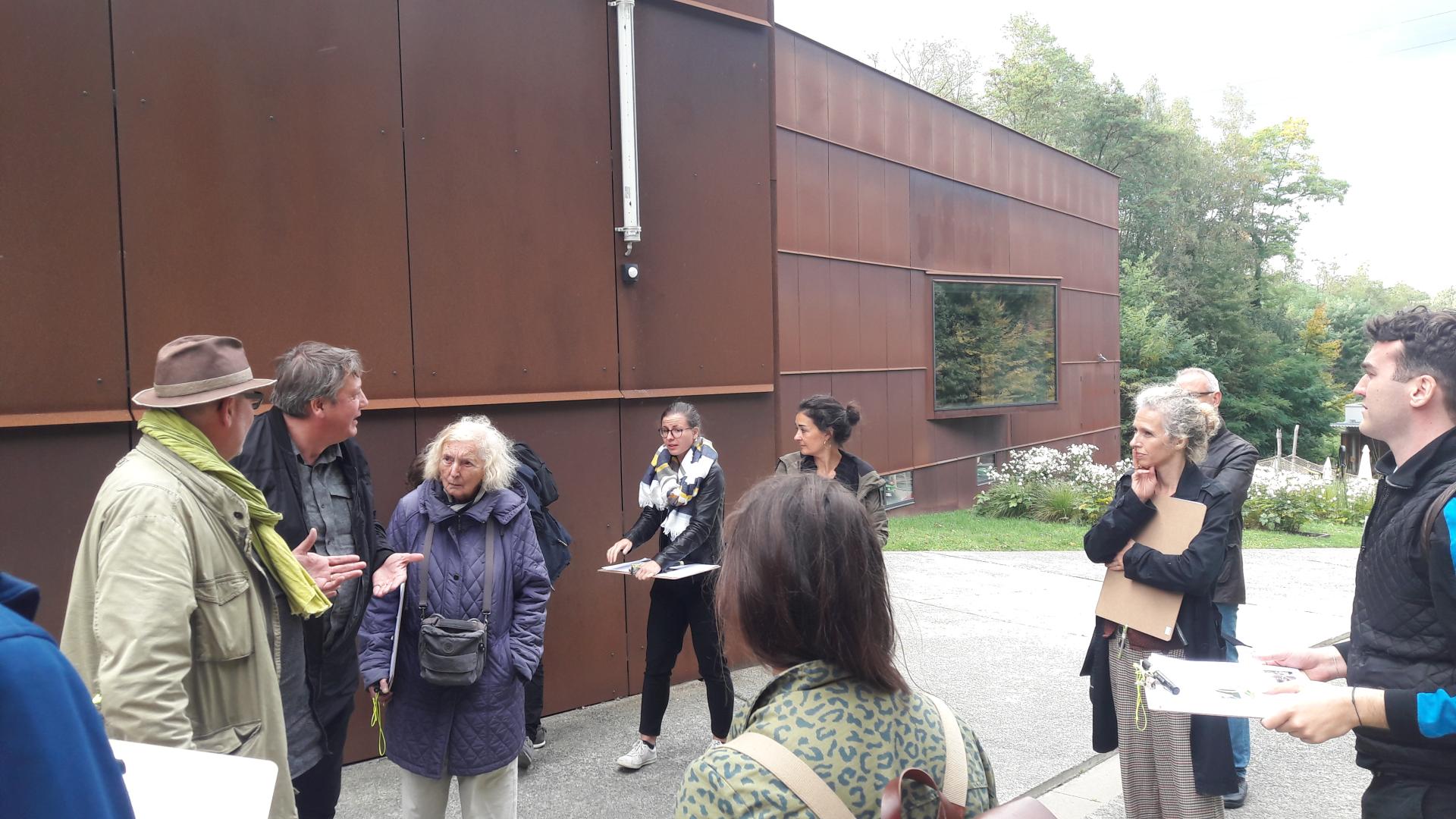On the last day of the tour, a public deliberation was held. Armed with coloured stickers, everyone could leave their mark on the building that was the most aesthetic, the most societal, the most interesting in terms of governance, and the most environmentally friendly. The panels were adorned with colours indicating a preliminary trend even before the deliberation took place. Our guest expert would observe people’s reactions to prepare her/himself to facilitate the debate. Each construction was then debated. We invited visitors to defend their favourite building on the microphone. At the end, each person elected one, two or three favourites. A reception buffet rounded off the evening.