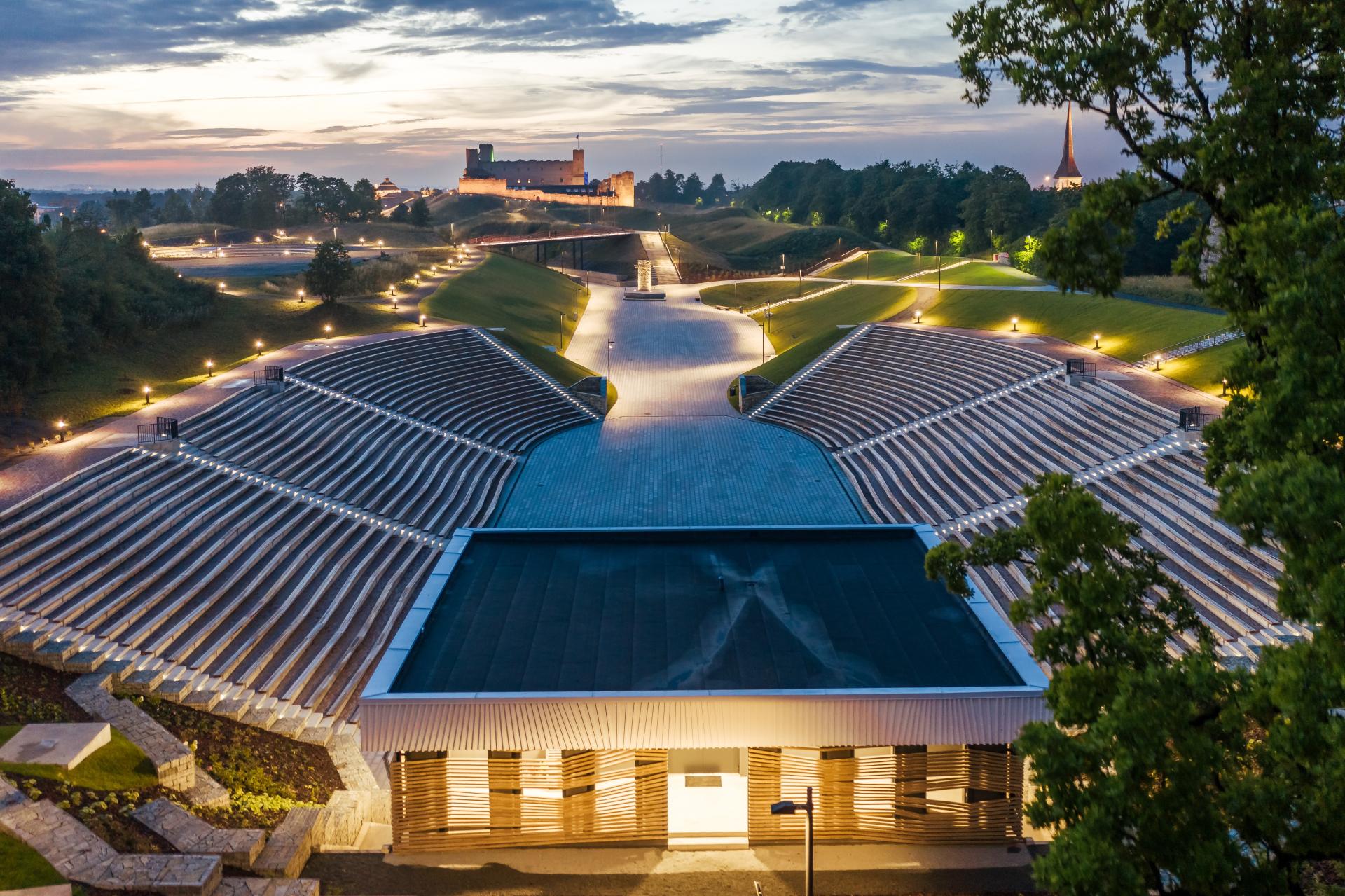 Spectacular Vallimäe open-air center is undeniably a powerful and powerful concerts and events venue, unique with its good location, accessibility and novelty. Located on nearly seven hectares between the slopes of upland, the centre has been integrated into historical nearby surroundings of medieval castle ruins and old down. Notably unique is the whole sophisticated greenery re-development of the area.
