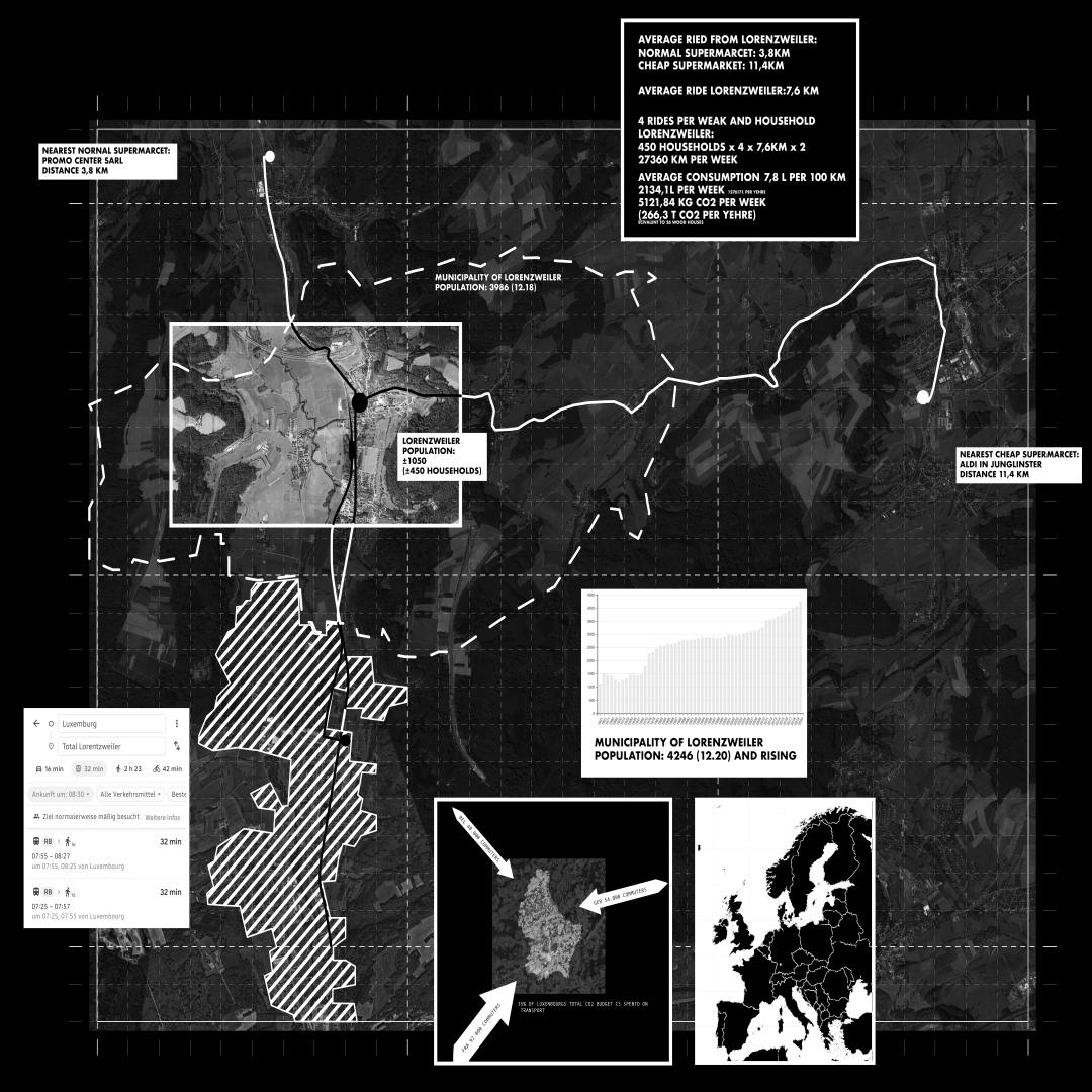 As part of the initiative ‘Luxembourg in Transition”, a strategy for a more sustainable future was developed, by analysing the transition of the village Lorenzweiler over the next 50 years.The project specifically focused on combining artistic impressions with data of the existing infrastructure and lifestyle.This analysis led to a small-scale concept that could be realized immediately, but as the larger analysis shows, can unfold its impact over the next decades on all aspects of the transition