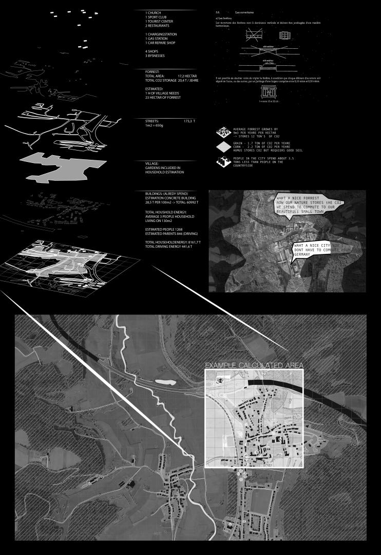 I conduct investigations on different areas, such as the forest, the villages building mass and the transport infrastructure, and formulate initial strategies of how these infrastructures can contribute to the overall situation. Those strategies are arrangend on the time-graph, so it can be seen how they can influence each other over the time of the transition.