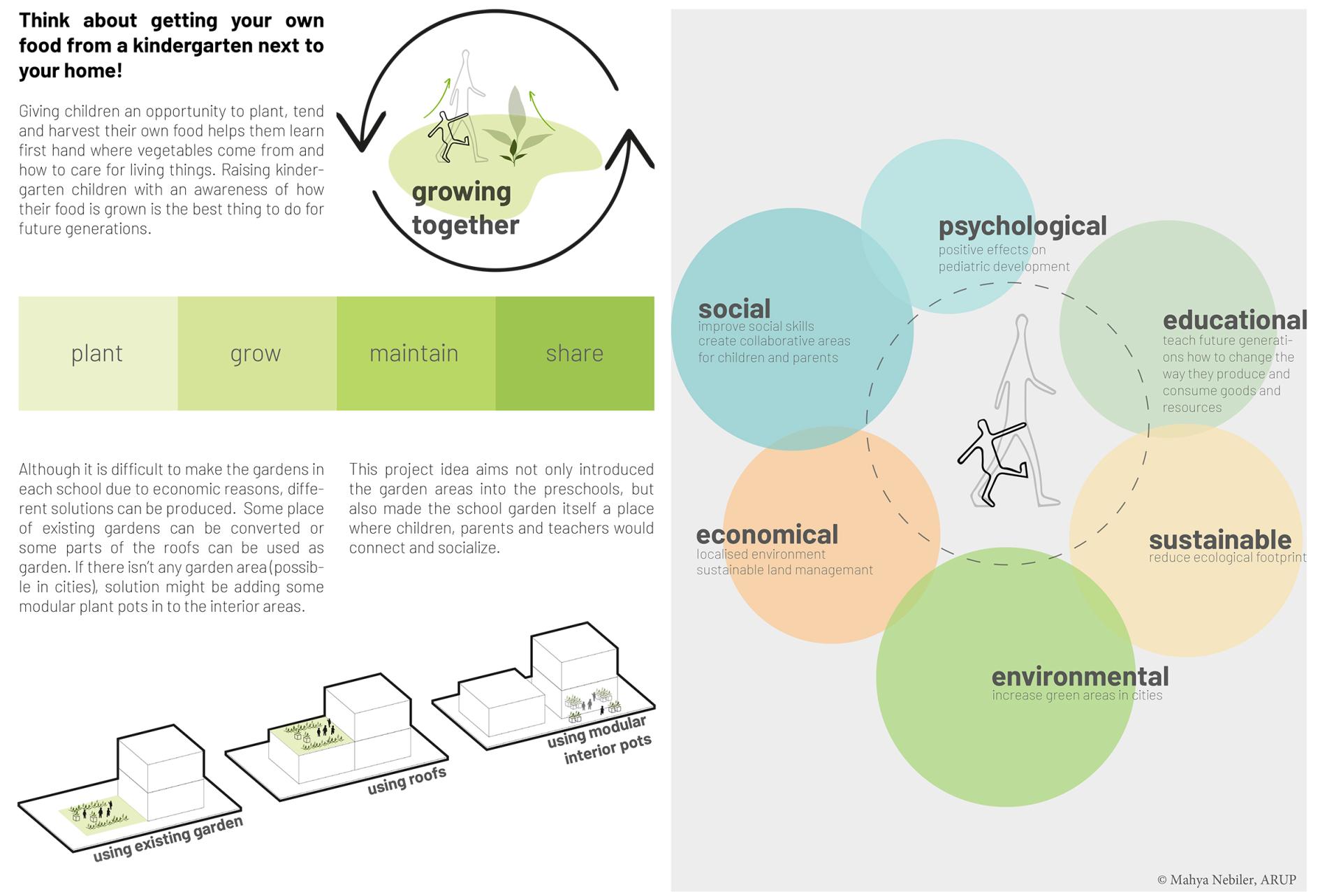 In terms of sustainability teaching future generations how to change the way they produce and consume goods and resources is significant enough to make a difference. Simply put, building planting gardens in the preschools provide to increase green areas which can reduce CO2 emission in cities. It can create a localized produce environment through plants grown by children to use in their own homes and share with neighbors and grow up with an awareness of produce food and agriculture.
