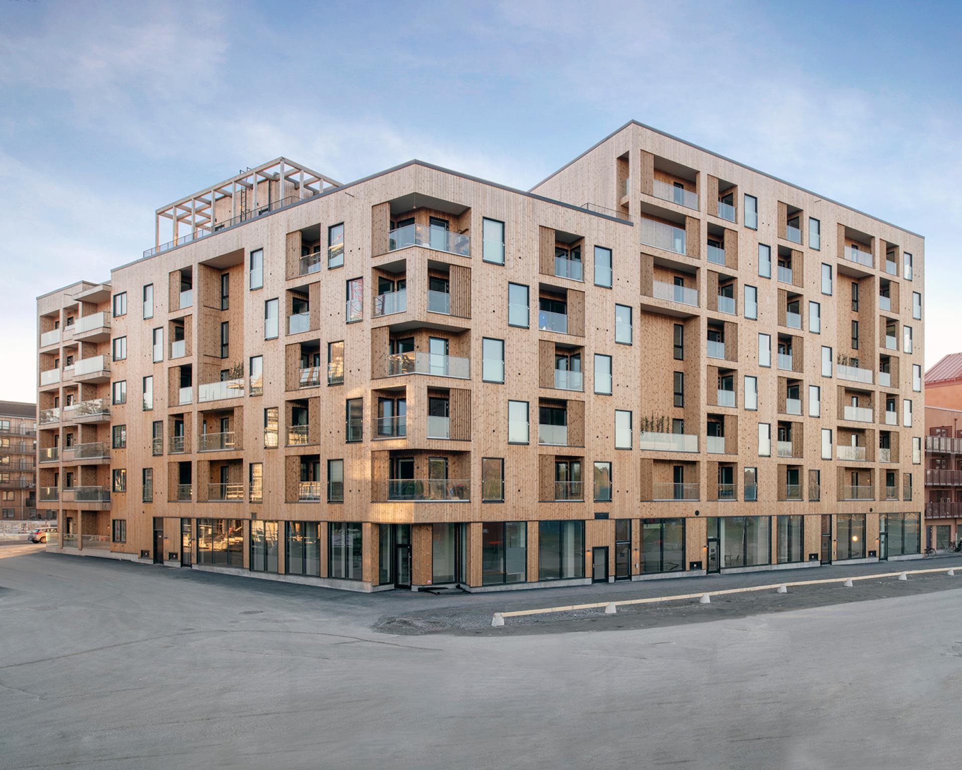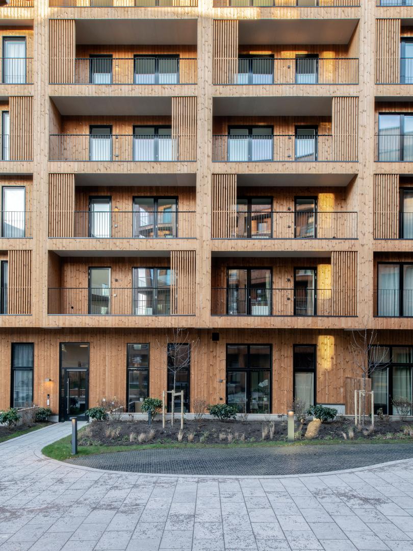 Wood as a construction material has a healthy connotation, and having a wooden frame ensures good acoustics in the apartments. There is something fundamentally human about knowing what materials you have close to your body. A genuine, quality wooden building constructed around a wooden frame contributes to health and well-being
