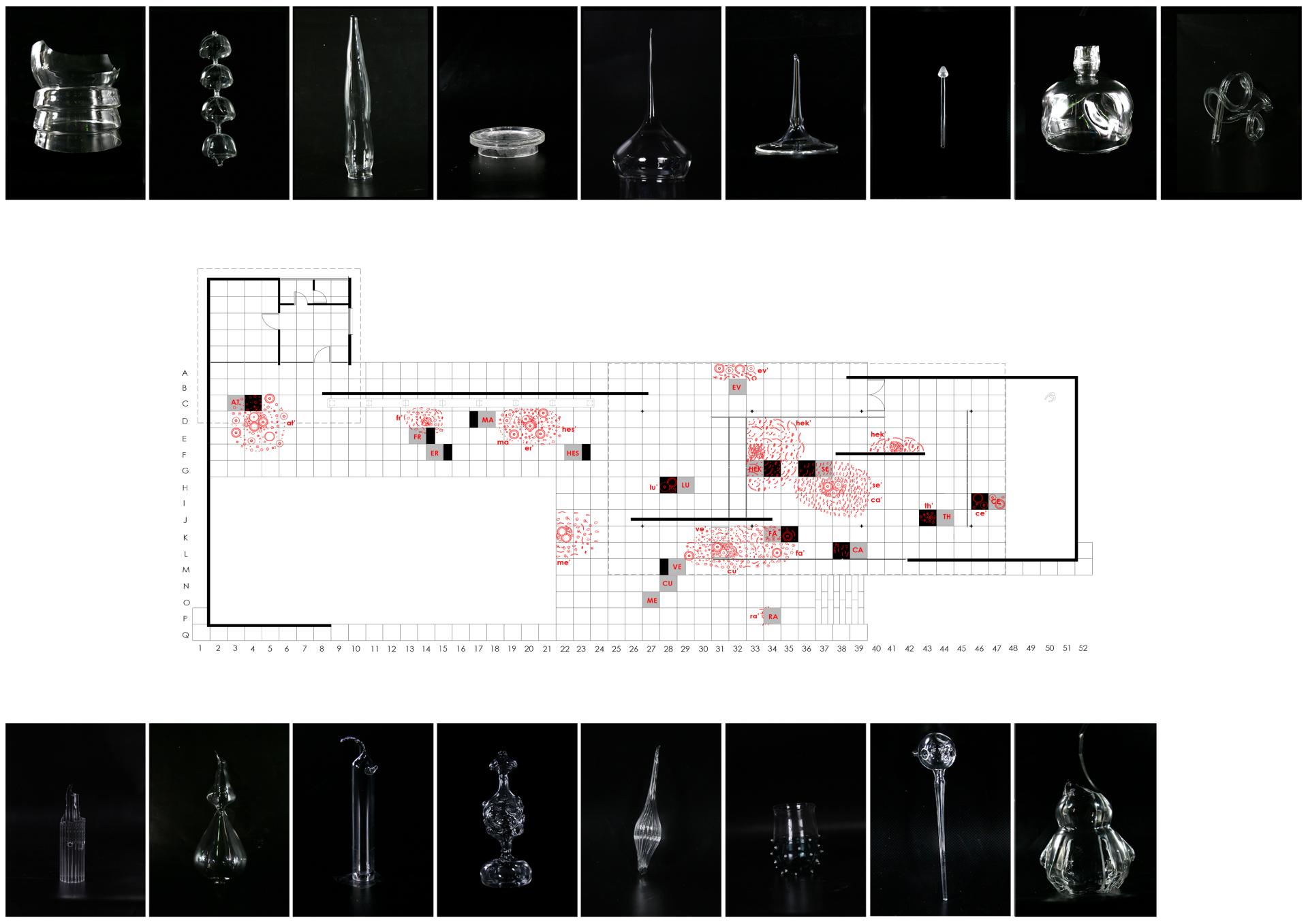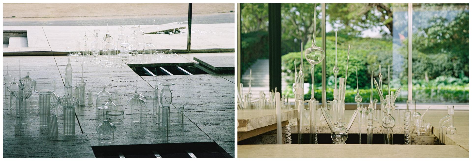 BF explores an aesthetics of contrast between what is commonly considered successful and what is commonly considered failed. It does so by de-contextualising discarded glass pieces saved from an impending last trip to the landfill in the monumental space of the Mies van der Rohe Pavilion, a canonical example of Modernist beauty.