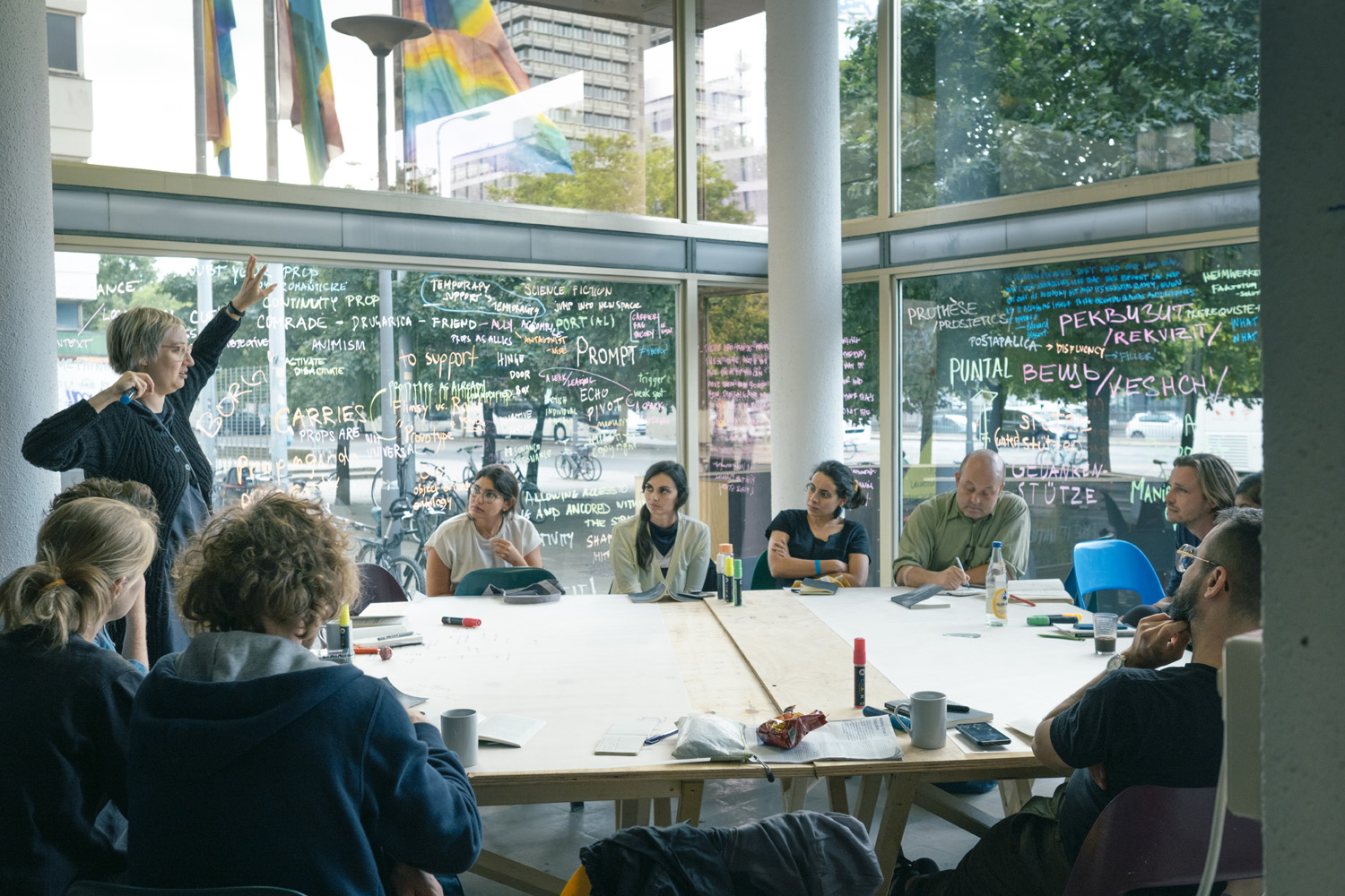 Complementing its day-sessions, a wide-ranging public evening programme or Night School accompanied the Making Futures School. It comprised reading groups, screenings, lectures and performances – sometimes hosted by the School working groups and sometimes by external invitees –an open invitation for the local Berlin public to encourage further exchange.