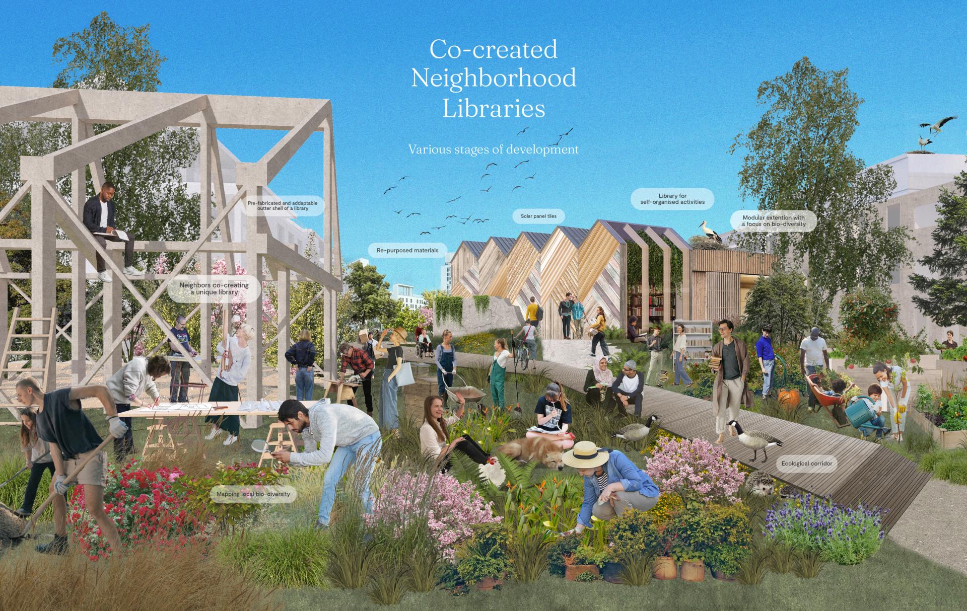 What would a library look and feel like if it was created together with your neighbors? The library could be a place where you engage in meaningful activities with your community. Through the process of creating the library, you can participate in the circular economy, heal the surrounding natural environment and learn sustainability in practice. Everyone is encouraged to join the library, which is constantly evolving and coordinated by your neighbors. Expert guidance and funding are provided.