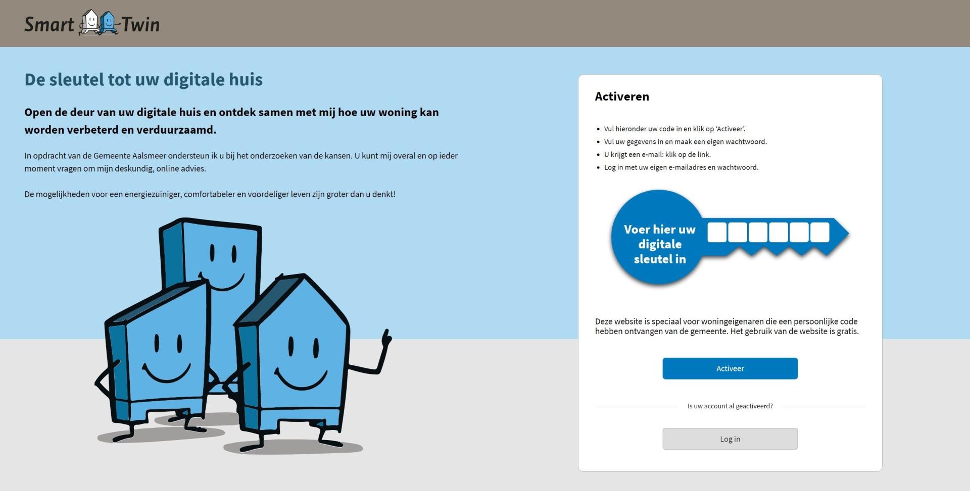 A crucial goal within this project was to involve the individual in this sustainability challenge in an accessible way. A large number of residents of the municipality of Aalsmeer has been approached to participate in this unique project. With great enthusiasm, the municipality invited them to do so. The municipality of Aalsmeer would like to offer together with its inhabitants an answer to the sustainability issue. In addition, it is important for the municipality that no one has to be excluded. The use of Smart Twin is completely free of charge for the residents. Having little money does not have to be a limitation for the use of Smart Twin. Moreover, using this online solution is also completely without obligation; no one has to make adjustments to his or her home!