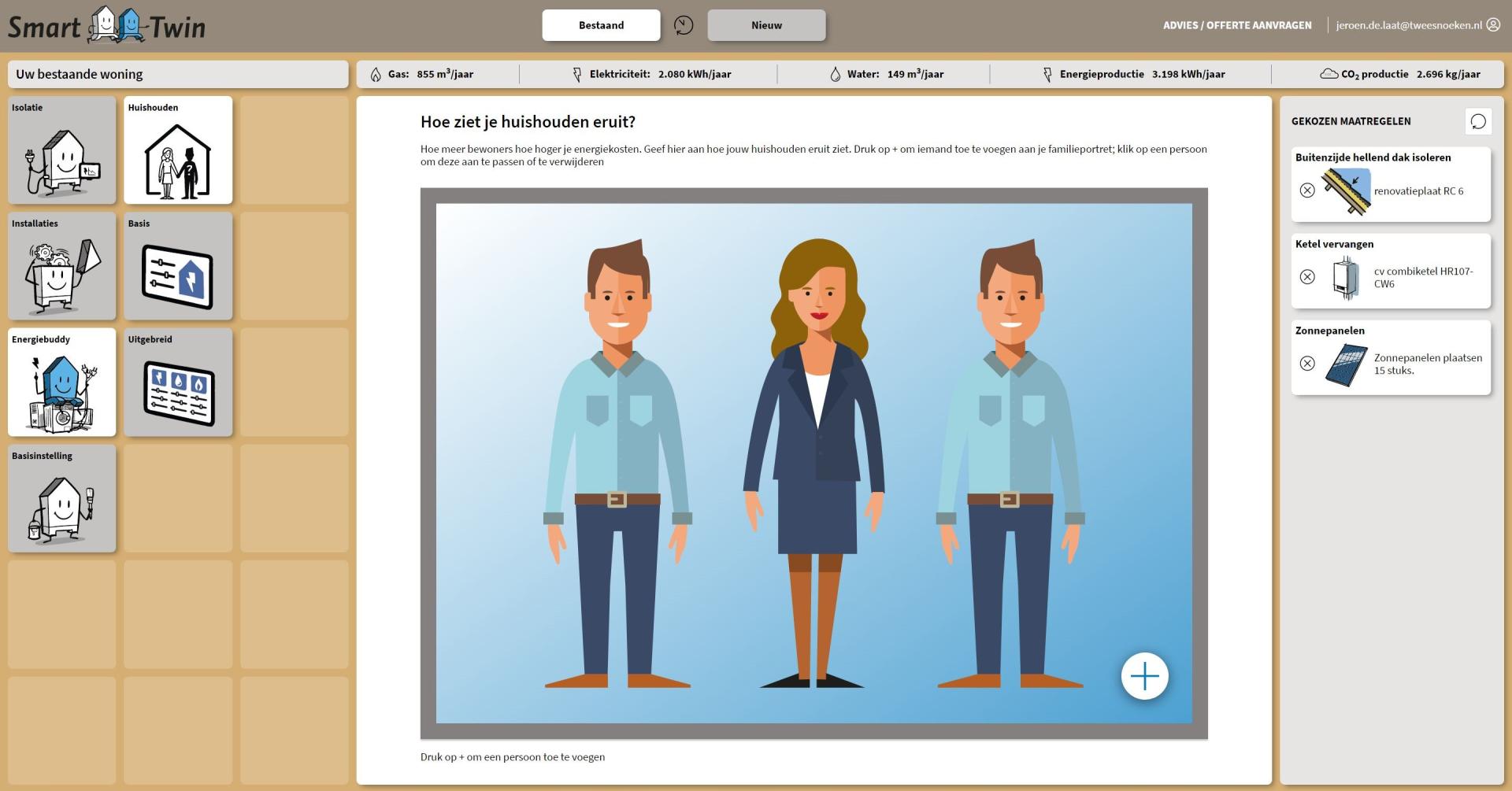 Smart Twin shows the inhabitants of Aalsmeer very concretely the impact of their own behaviour on their energy bill. Residents simply set the energy consumption of their own household and Smart Twin generates a comprehensive, clear report that shows how they can save energy and thus effectively reduce their monthly costs. As a result of the confrontation with their own energy consumption, the residents become aware of their own impact on the environment. They notice that small actions and habits can really make a difference.