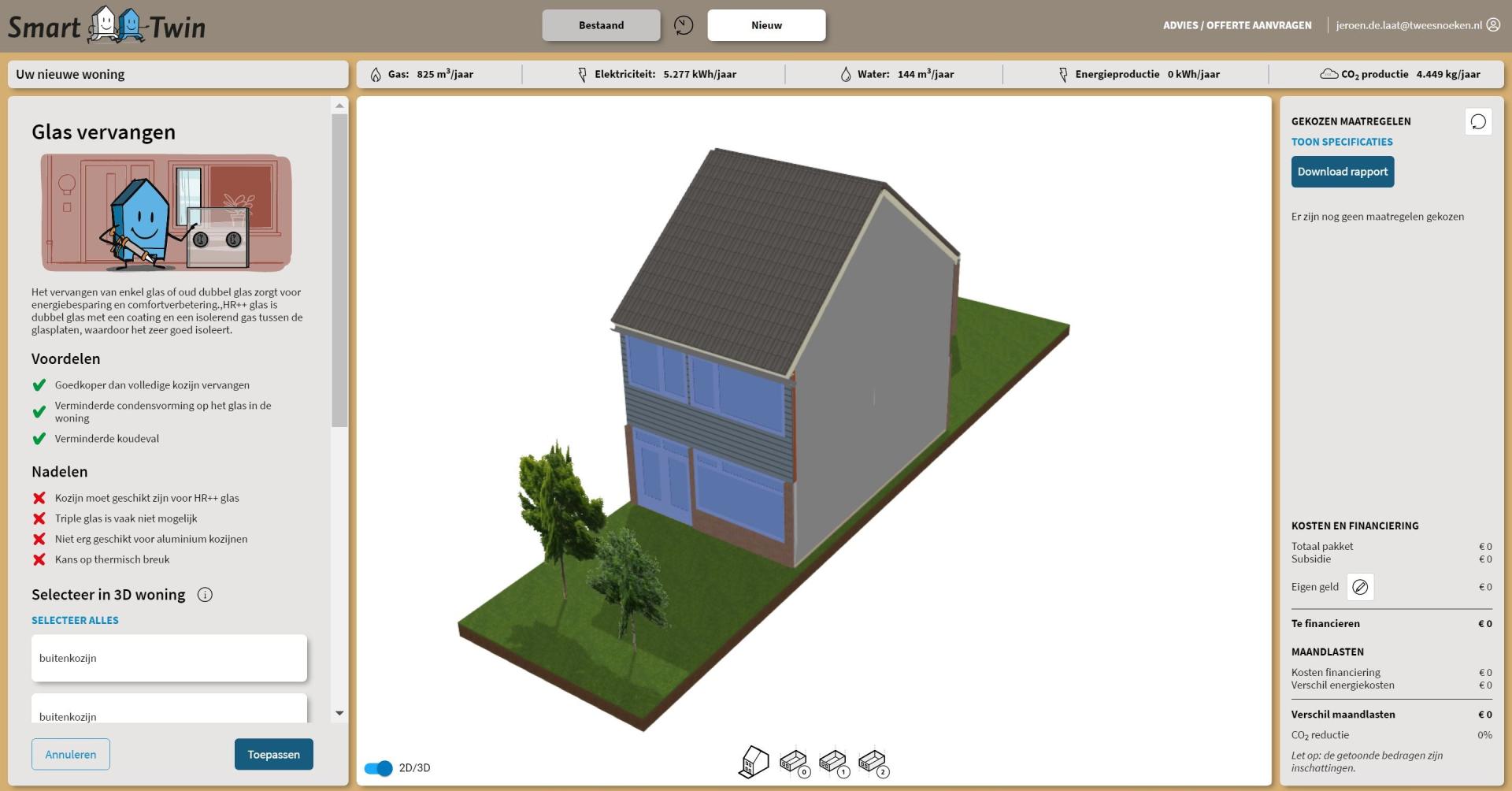 Because Smart Twin has shown residents very concretely how they can smartly adapt their own home, the process for renovating and making homes more sustainable has been drastically simplified for them. Smart Twin offers optimal insight into the materials and techniques to be used. In this way, renovation processes for these private homeowners are simplified. Smart Twin's intelligent advice is transformed into a better living environment within this municipality. This leads to an effective step towards large-scale adjustments in the living environment.