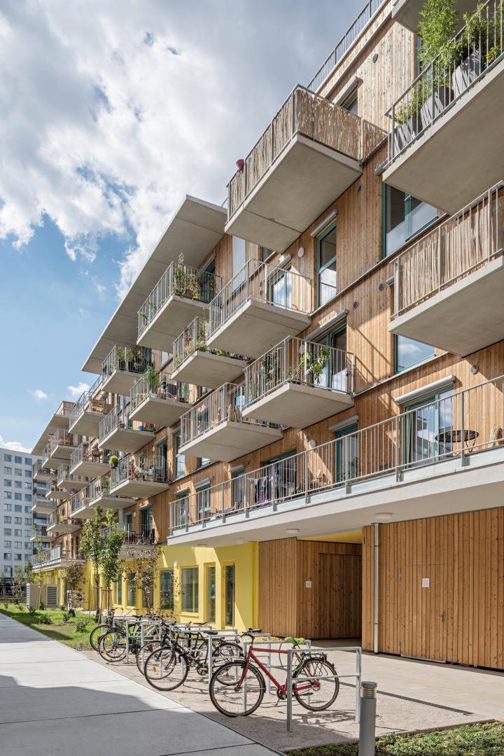 Gleis 21 is in the heart of the new quarter in Vienna: The Sonnwendviertel forms a bridge between the tenth district and the inner-city area. Visible from afar, the wooden facade already signals a contrast to the familiar urban look. The wood hybrid construction is a technical innovation with a role model. Created through participation, the residents own, operate and manage the co-housing-project collectively themselves with a great external impact.