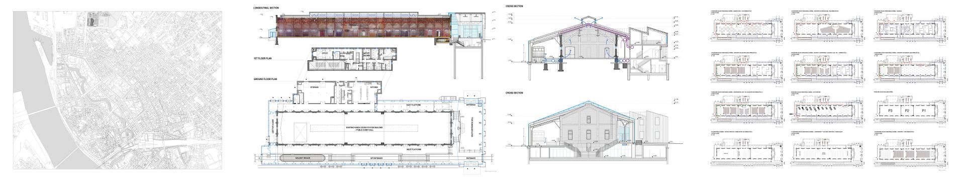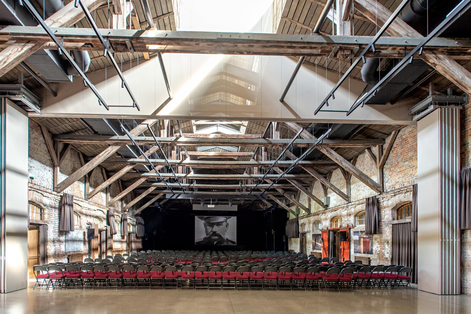 Old warehouse upcycled to multipurpose venue — for concerts, exhibitions, banquets and other gatherings now stores and deals with the ‘goods’ of culture. Main hall of 1200 sqm could be divided in three separate spaces, allowing noteworthy flexibility.